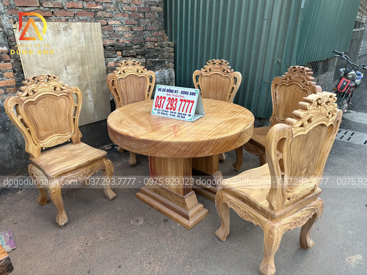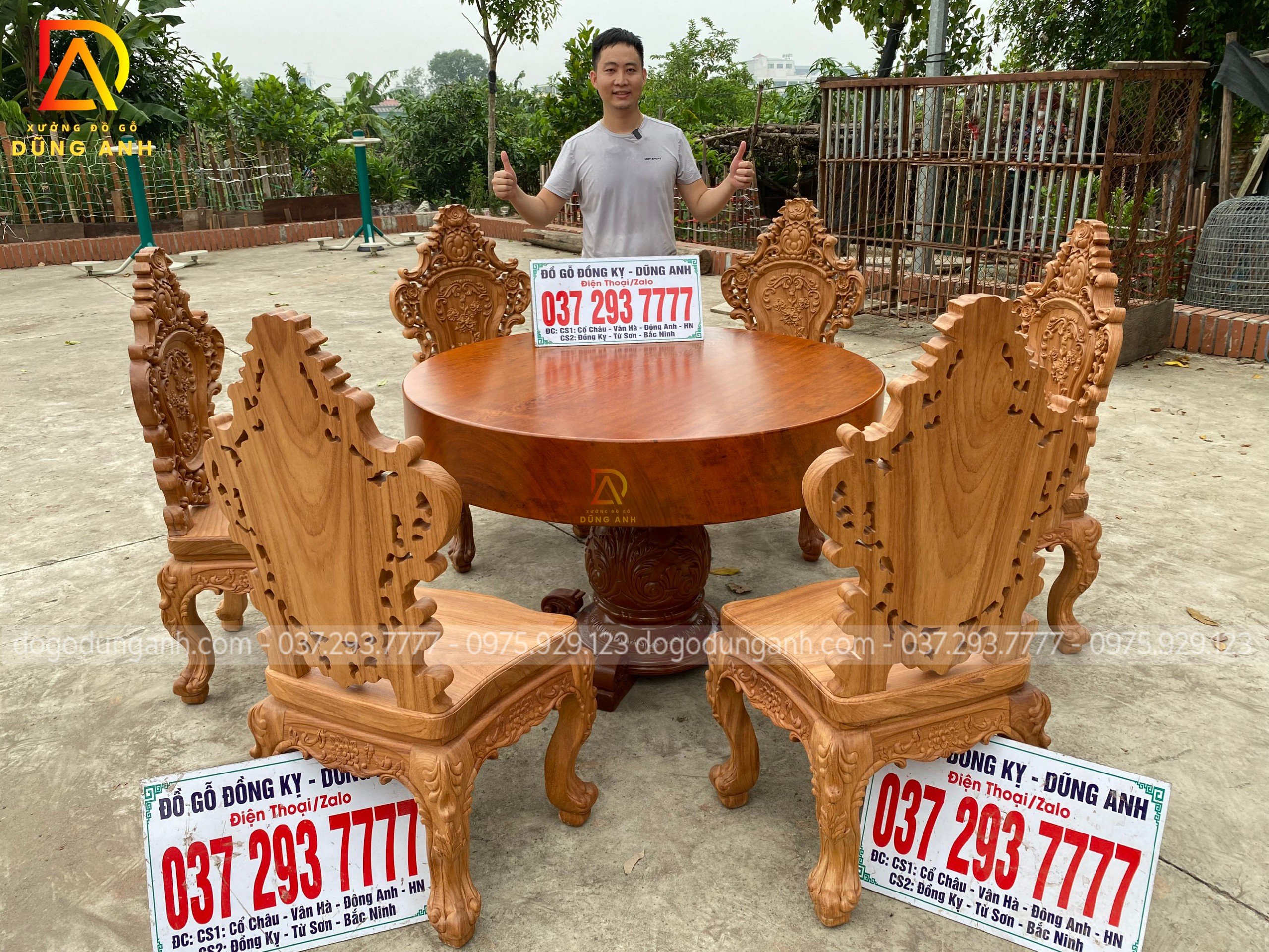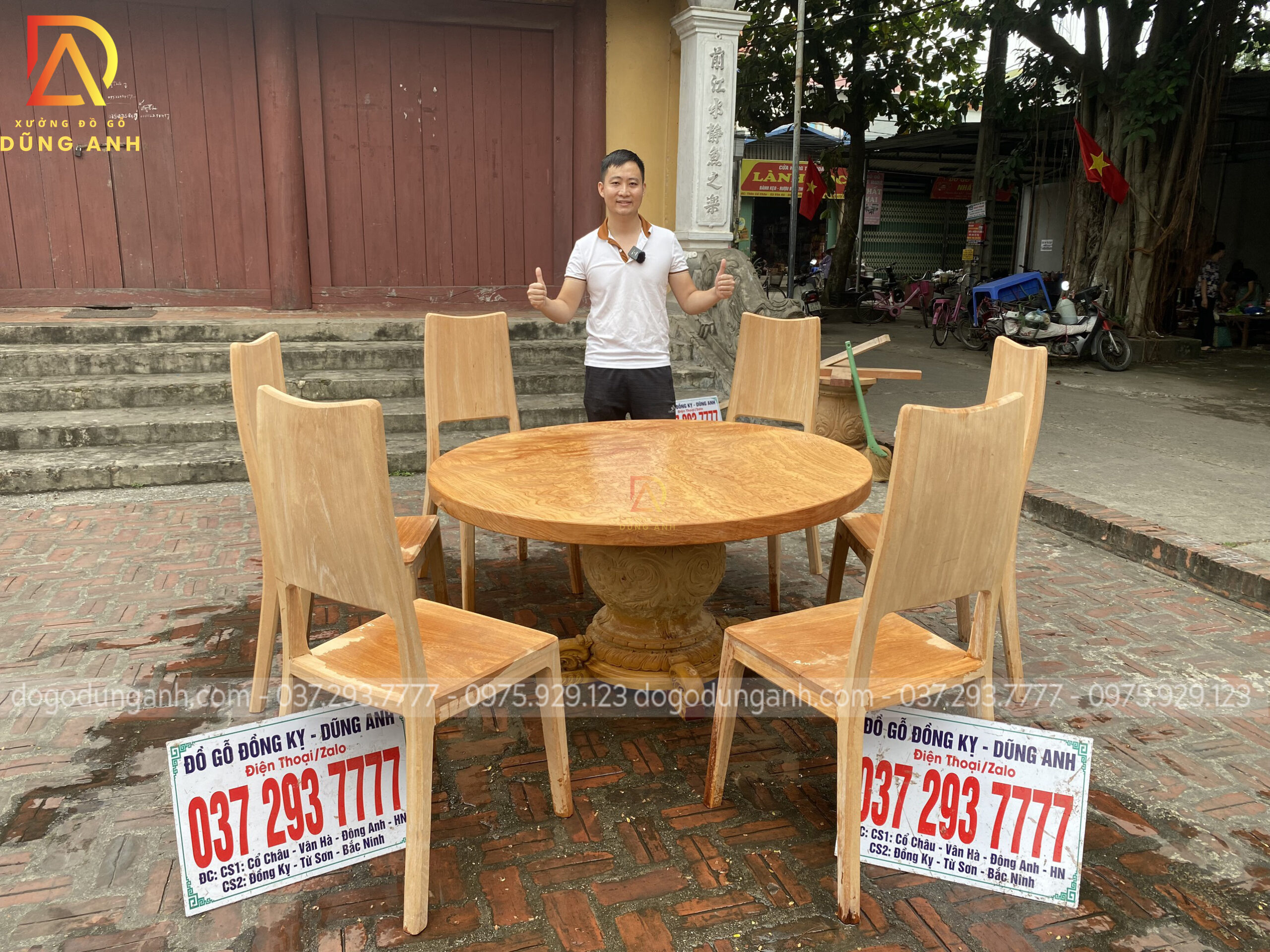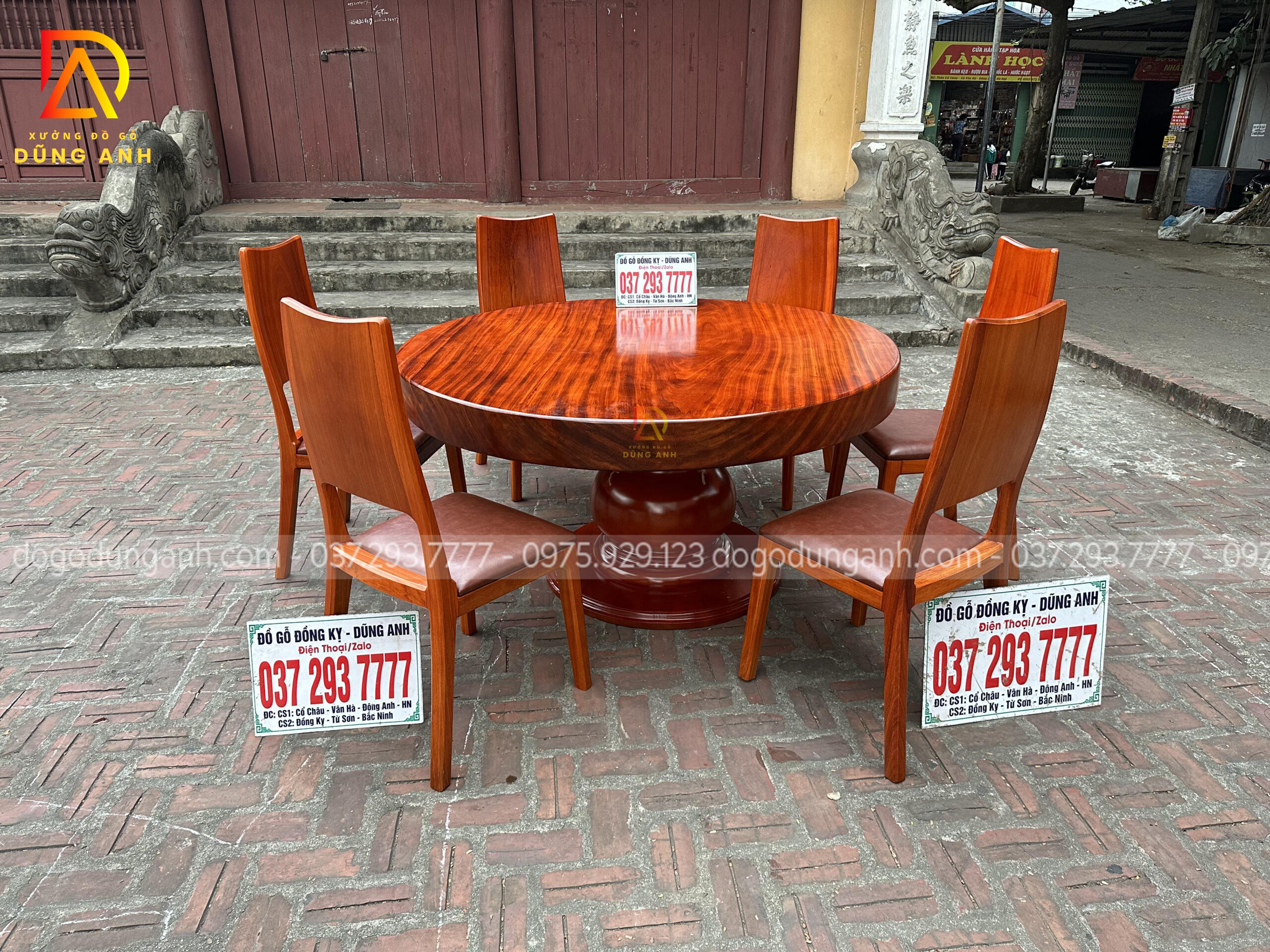 Bộ 6 ghế hiện đại kết hợp với bàn tròn NGUYÊN KHỐI chất liệu gỗ gõ đỏ vân siêu đẹp