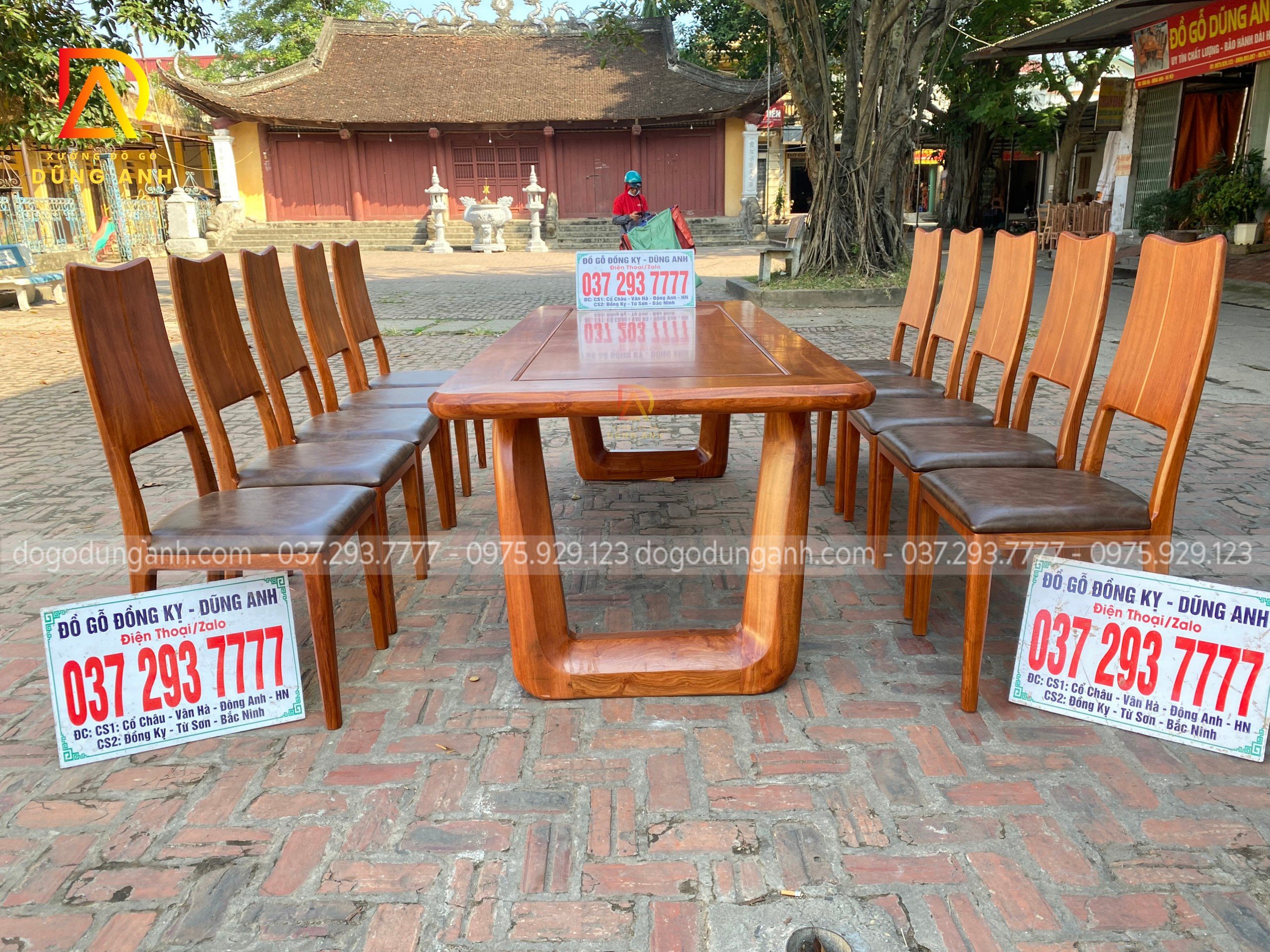 SIÊU PHẨM bàn hiện đại trụ chữ U kèm 10 ghế hiện đại – chất liệu gỗ Hương Đá