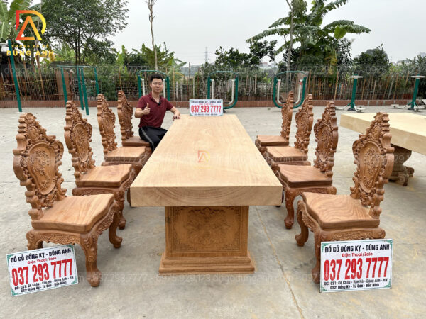 SIÊU PHẨM bàn Nguyên Khối SIÊU VÂN + Bộ 10 ghế Luxury Hoàng Gia