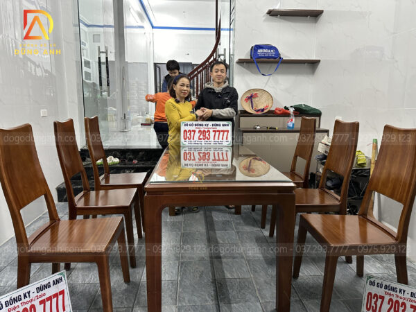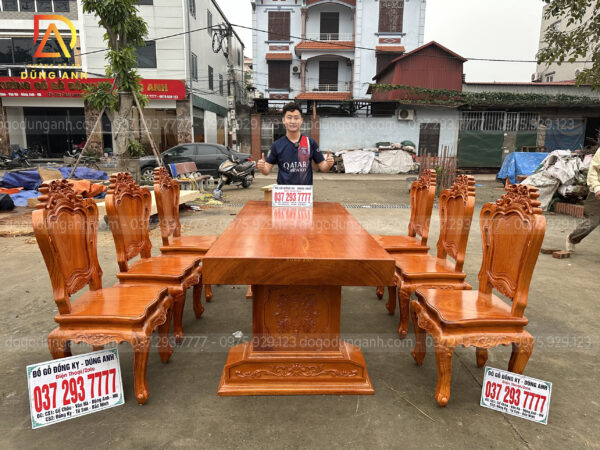 Bộ Bàn Ăn Gỗ Gõ Đỏ Nguyên Khối Hàng Dầy Dặn Tuyển Gỗ Lựa Vân