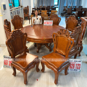 Bạn có thể yêu cầu điều chỉnh kích thước bàn, số lượng ghế hoặc chi tiết chạm khắc theo sở thích và không gian sử dụng. Chỉ cần liên hệ với Xưởng đồ gỗ Dũng Anh, mọi thiết kế sẽ được đáp ứng một cách linh hoạt và tận tâm.