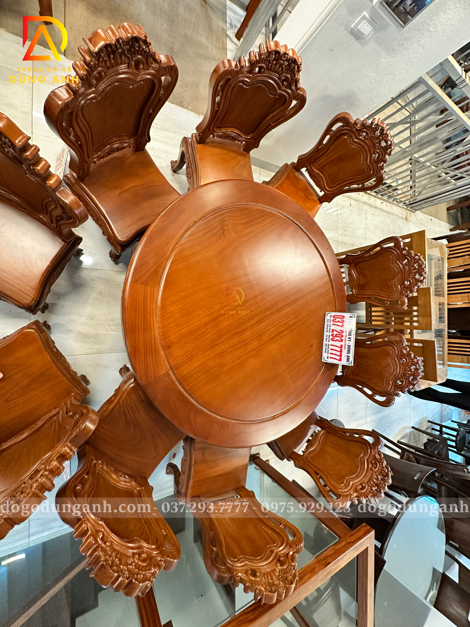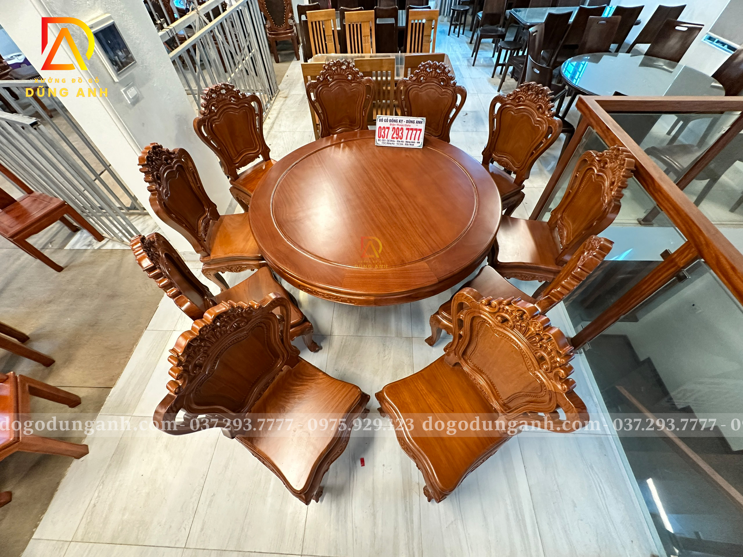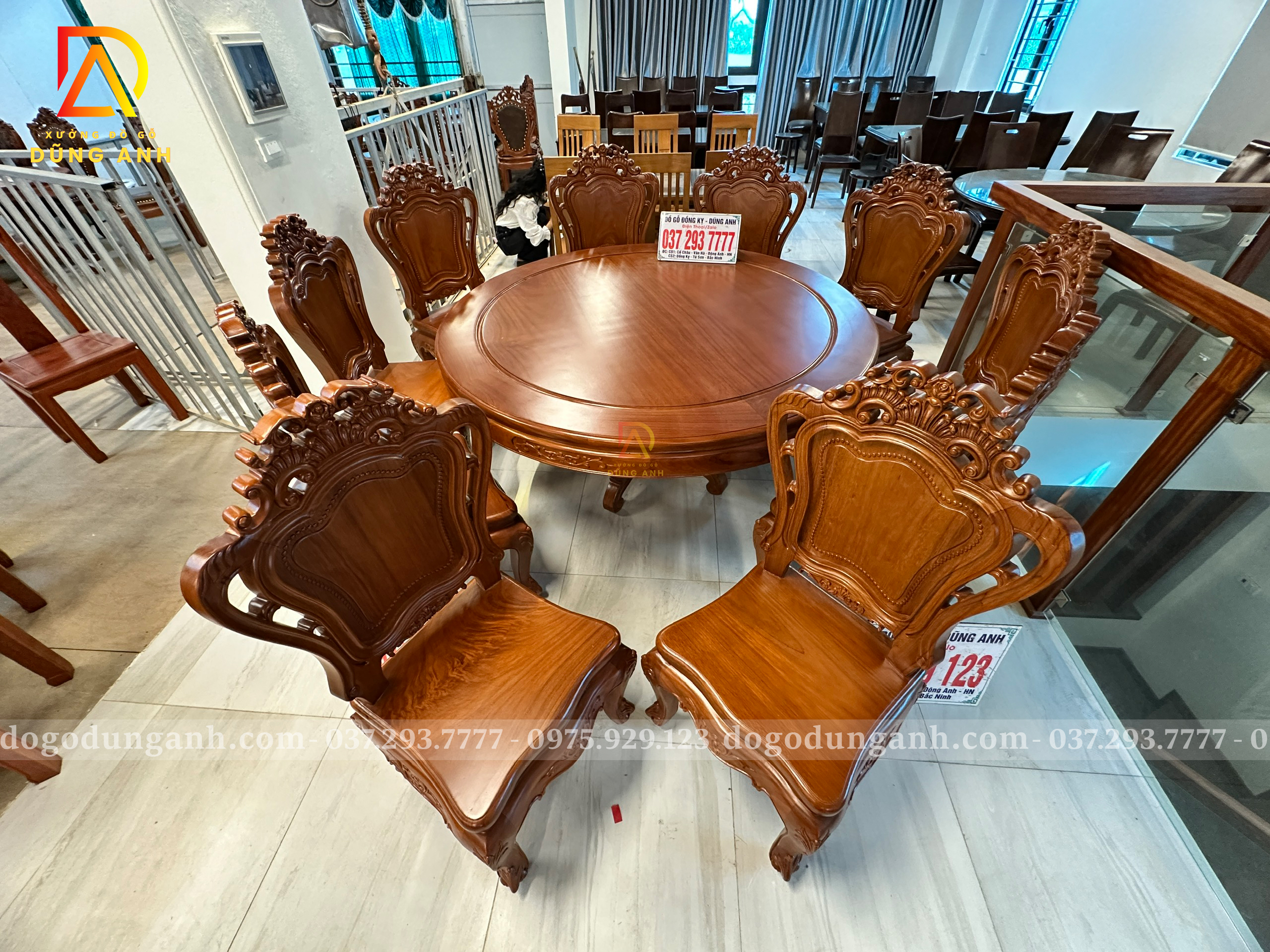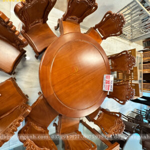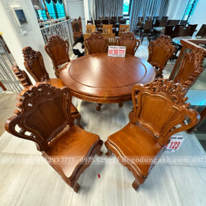 Đồ Gỗ Dũng Anh | Hàng Sẵn Tại ShowRoom Bộ 10 Ghế Louis Hoàng Gia – Bàn Tròn Yếm Bo – Gỗ Gõ Đỏ