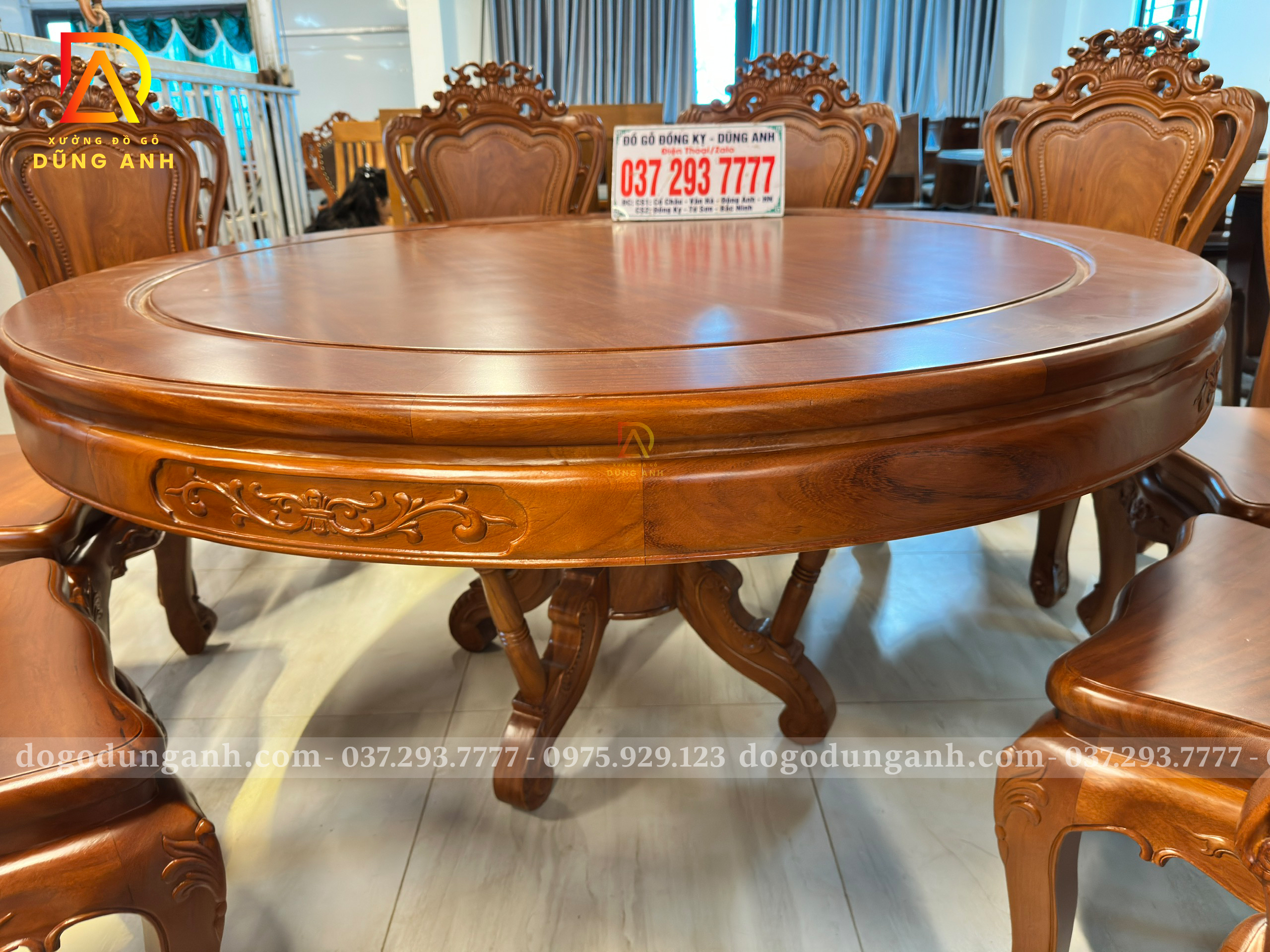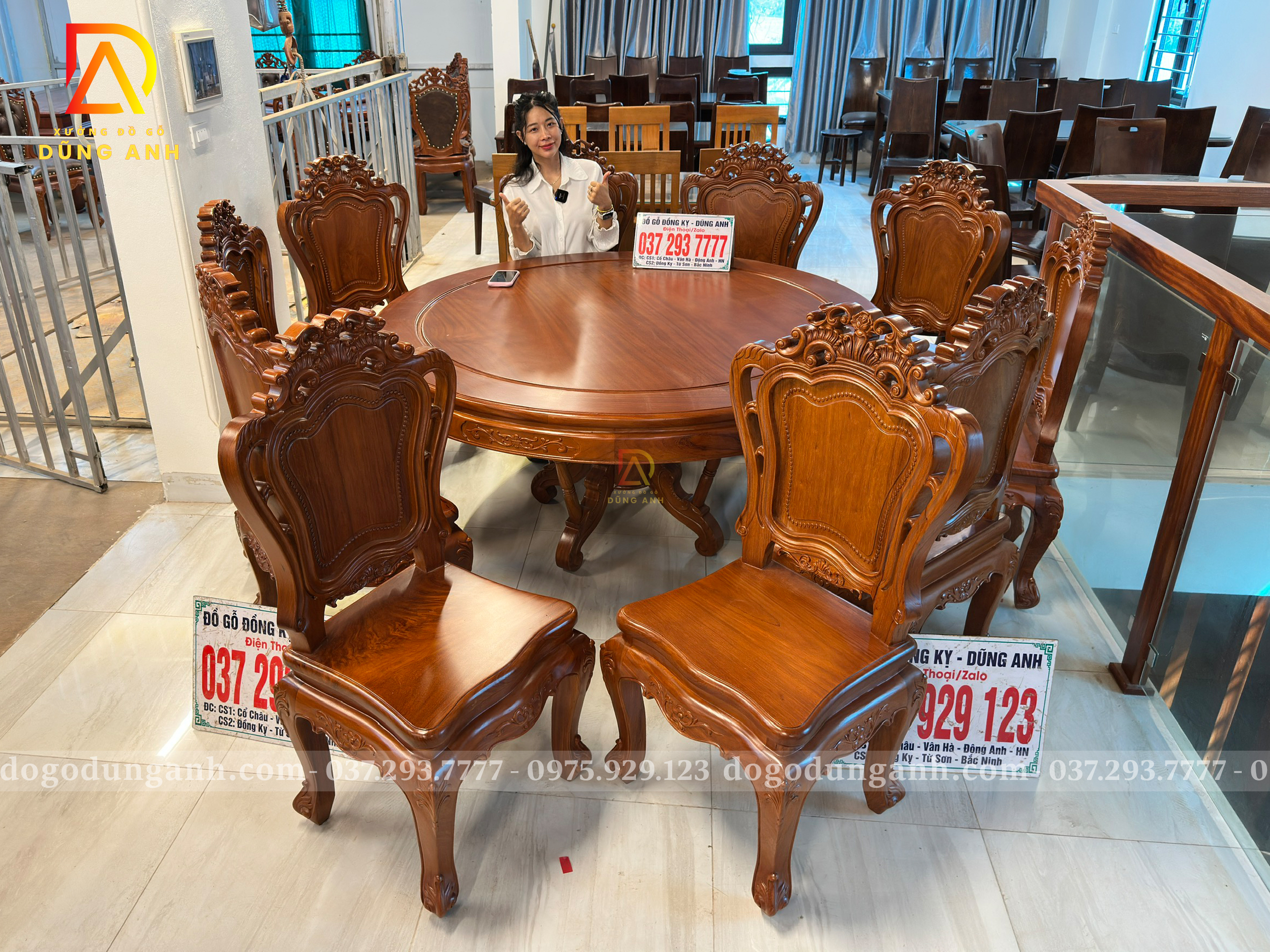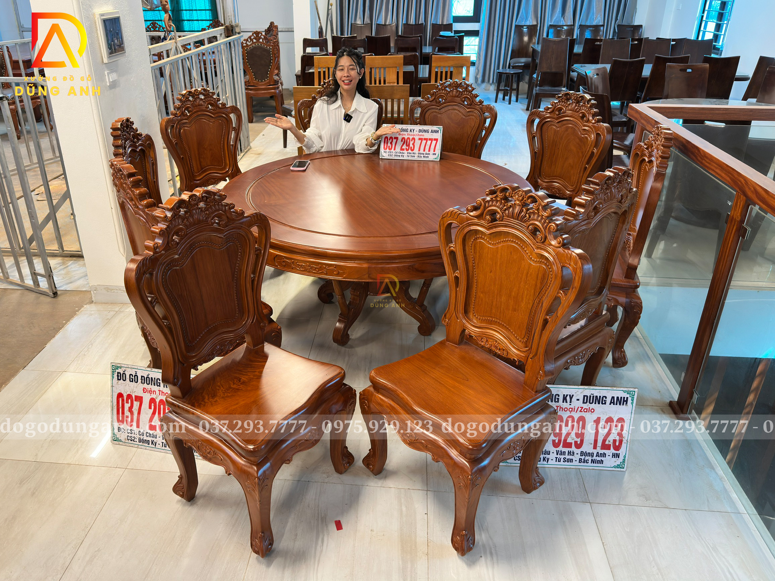 Đồ Gỗ Dũng Anh | Hàng Sẵn Tại ShowRoom Bộ 10 Ghế Louis Hoàng Gia – Bàn Tròn Yếm Bo – Gỗ Gõ Đỏ