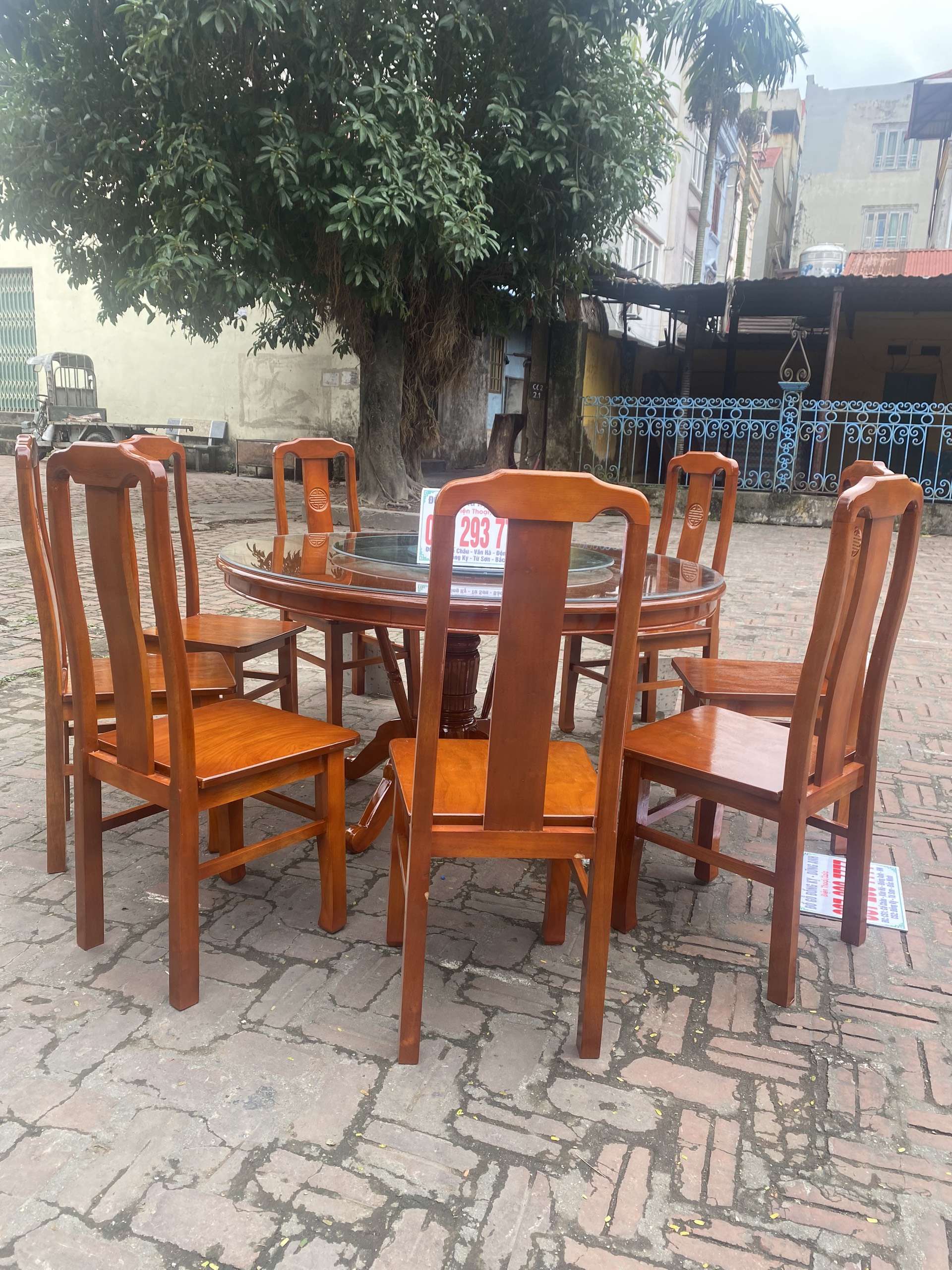 Bộ sản phẩm 8 ghế Triện thọ kết hợp với 1 bàn tròn có mâm xoay siêu đẹp.