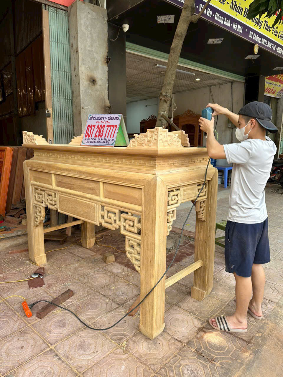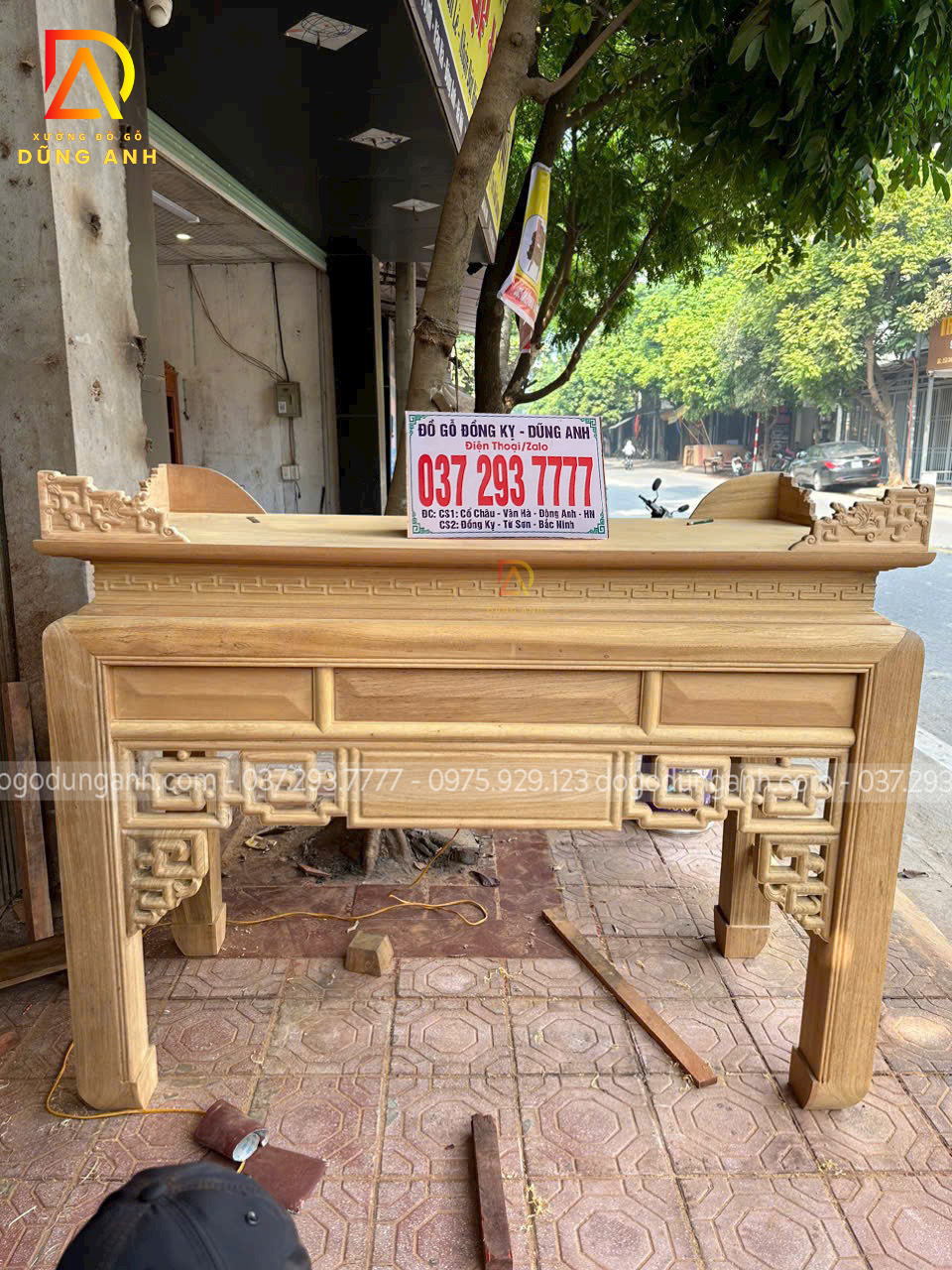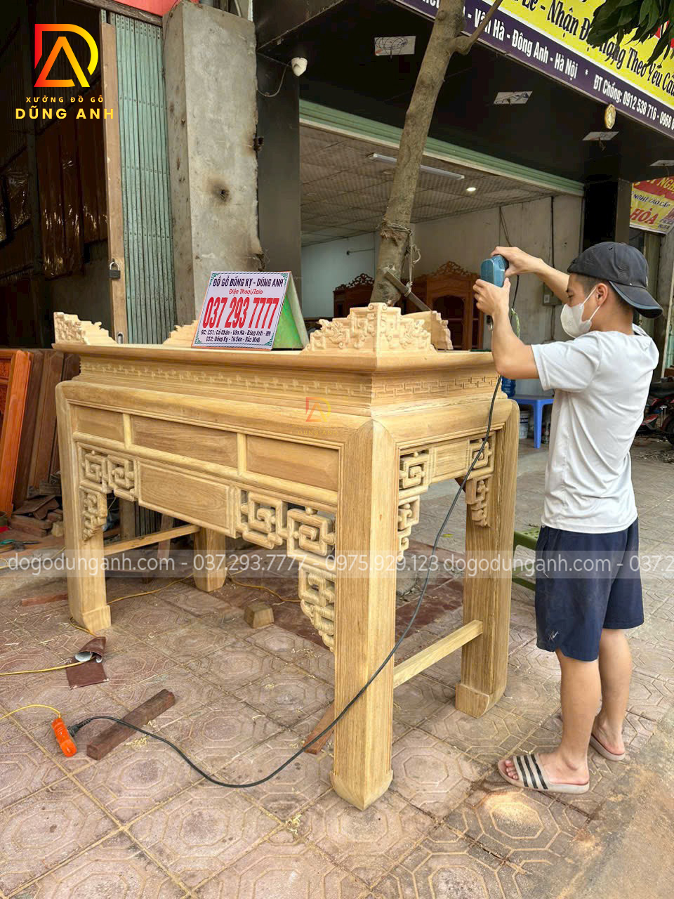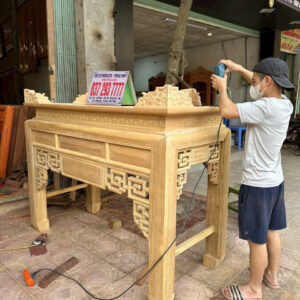 Các đường nét đục chạm trên sản phẩm vô cùng đơn giản lên trong quá trình sử dụng và lau dọn sẽ vô cùng tiện lợi mà không lo mỗi tết đến xuât về phải mất cả buổi lau dọn vô cùng vất vả, nhưng không vì thế mà Xưởng đồ gỗ Dũng Anh bên em làm hàng nhanh hàng ẩu, bên em vẫn làm vô cùng cẩn thận và kỹ lương bởi bàn tay của những người thợ thủ công có tay nghề lâu năm