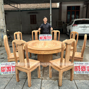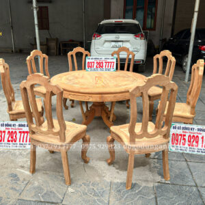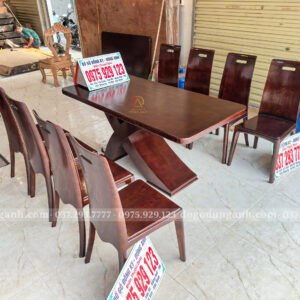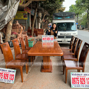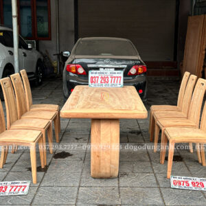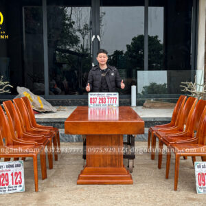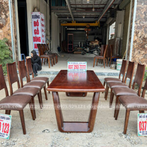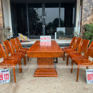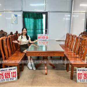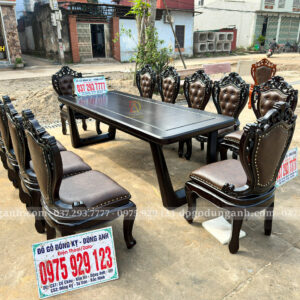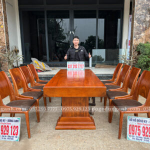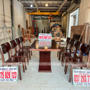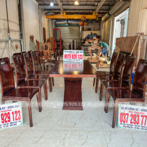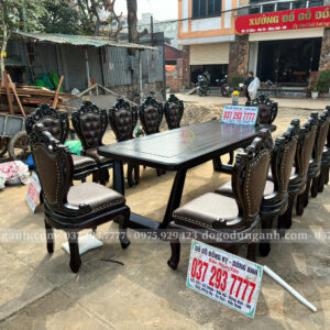 Đồ Gỗ Dũng Anh | Bộ 12 Ghế Nữ Hoàng Bọc Da kết hợp Bàn Chữ Nhật Chân Trụ U Nguyên Khối Gõ Đỏ Nam Phi