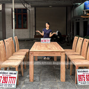 Đồ Gỗ Dũng Anh | Bộ sản phẩm 8 Ghế Hiện Đại ( Cong ) – Bàn Chữ nhật 4 chân soi chỉ đẹp – Gỗ Hương Đá