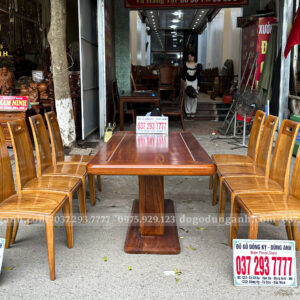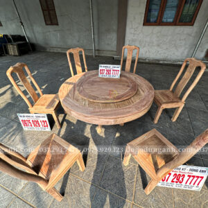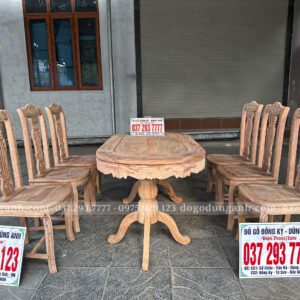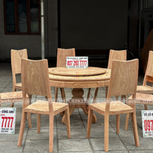 Đồ Gỗ Dũng Anh | Mẫu Bàn Ăn 6 Ghế Triện Thọ + Bàn tròn yếm bo – Gỗ Hương Đá | Đồ Gỗ Đồng Kỵ Dũng Anh