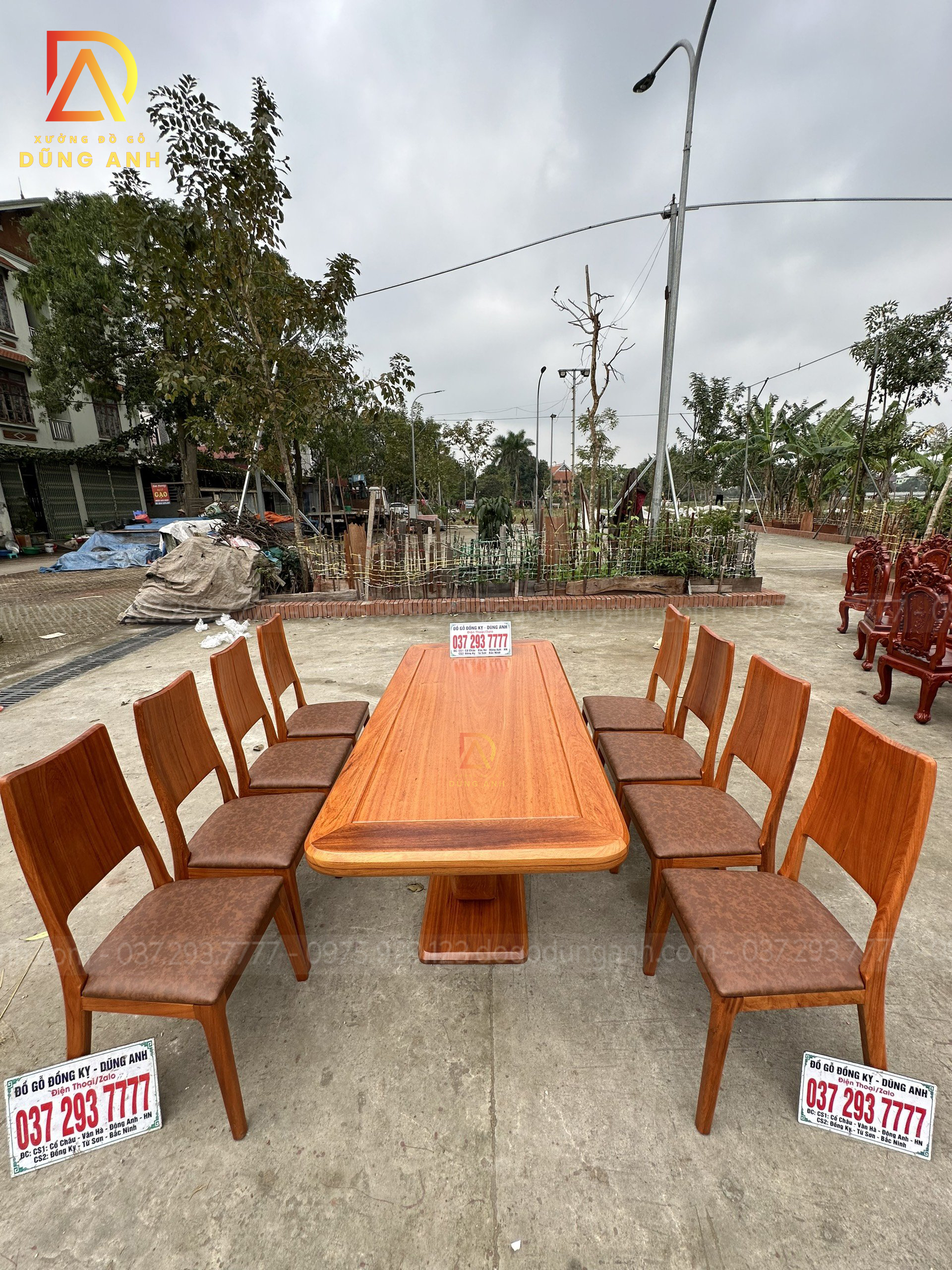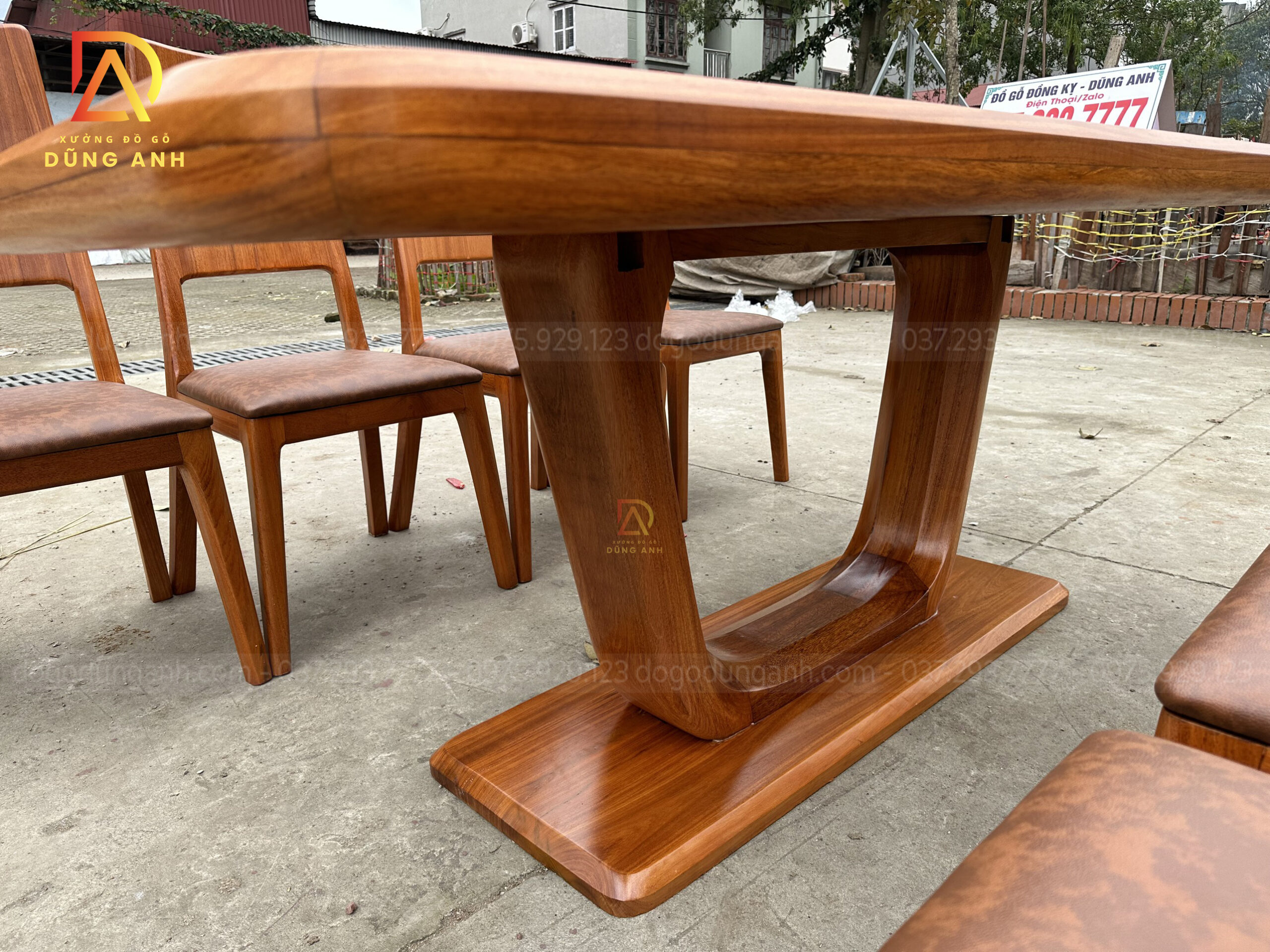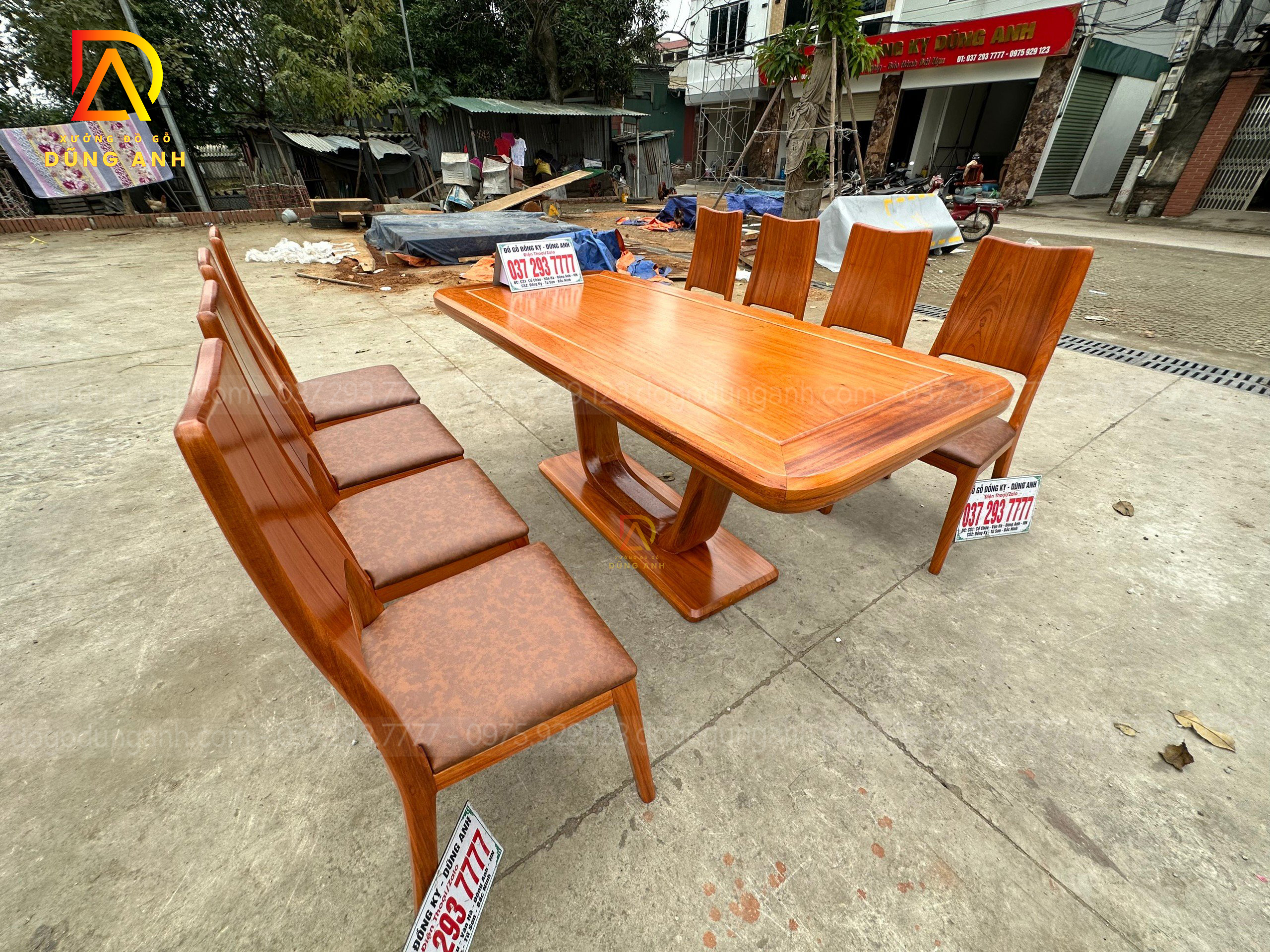 Bàn Chân trụ chữ U + Bộ 8 ghế bọc da hiện đại – gỗ GÕ ĐỎ