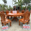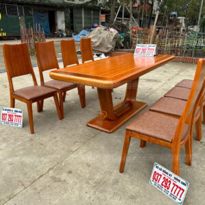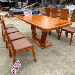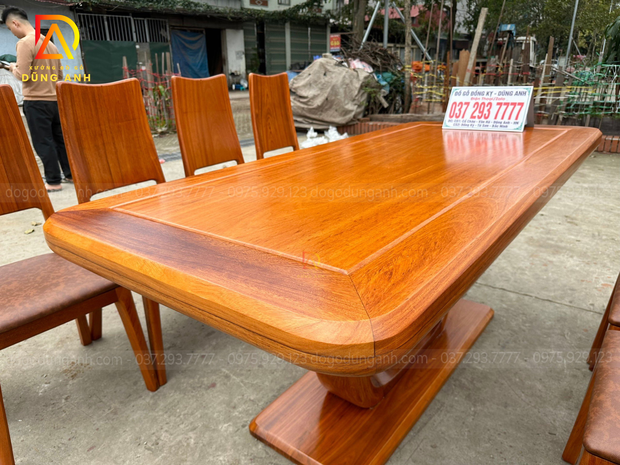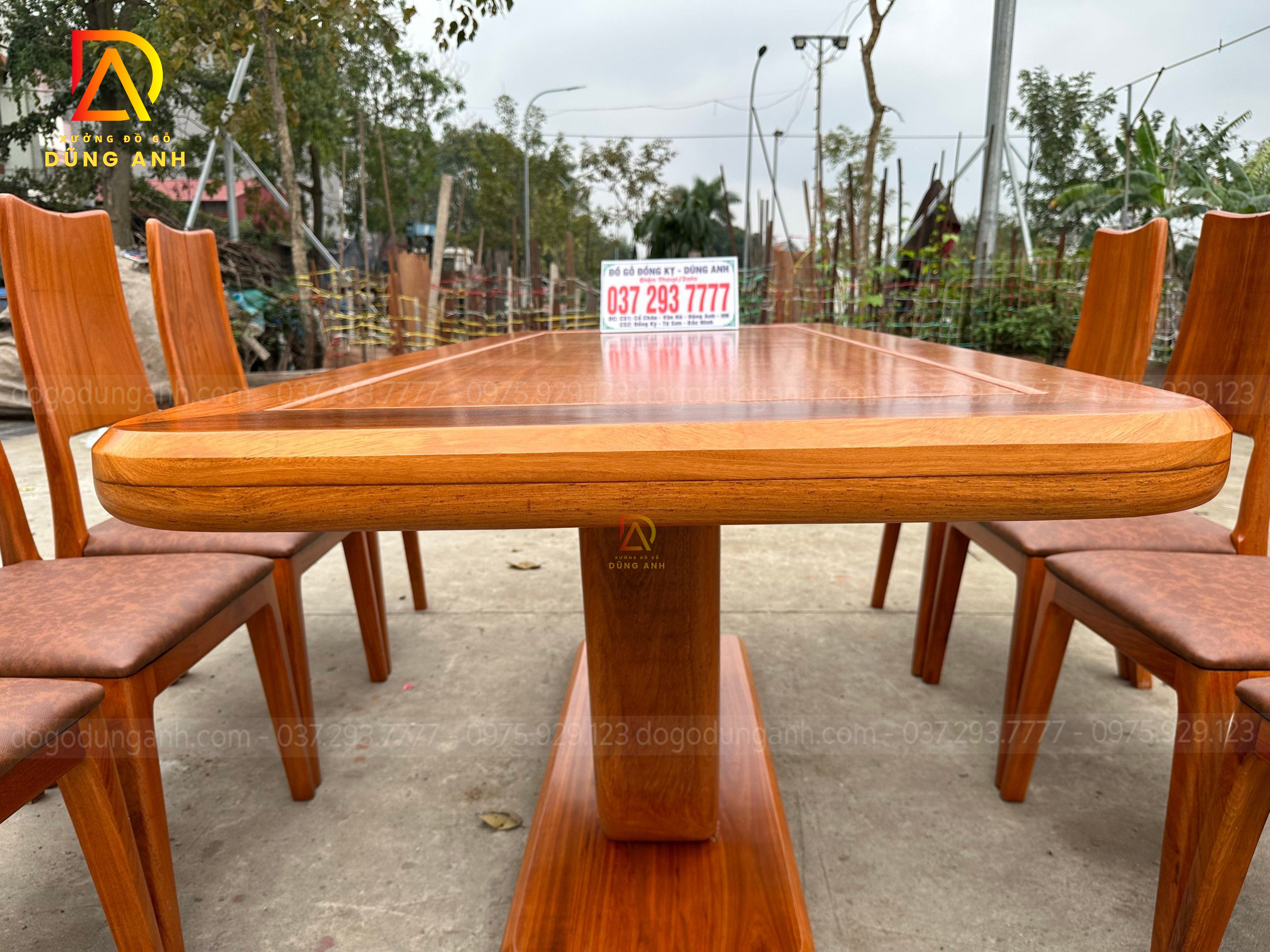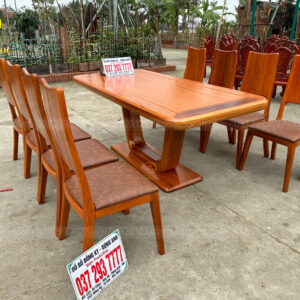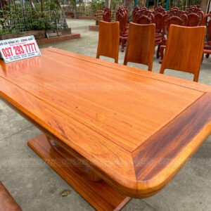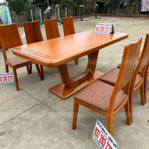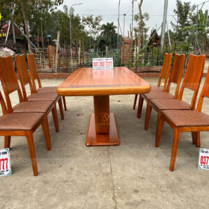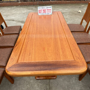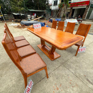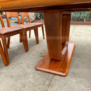 Bàn Chân trụ chữ U + Bộ 8 ghế bọc da hiện đại – gỗ GÕ ĐỎ