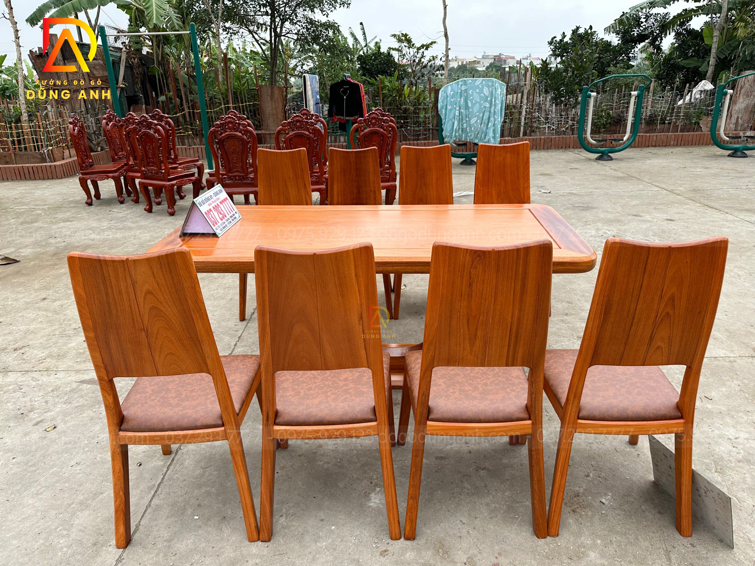 Bàn Chân chữ U + Bộ 8 ghế bọc da hiện đại – gỗ GÕ ĐỎ