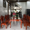 Bàn Ghế Ăn 6 Ghế Triện Thọ + Bàn Bầu Dục Yếm Vén – Gỗ Gõ Đỏ