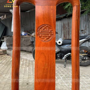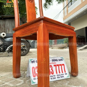- Kích thước mặt ghế là 42×45 cm và có độ dày là 2,5 cm được làm với chất liệu gỗ gõ đỏ thì cực kì đanh và chắc chắn bền bỉ theo thời gian