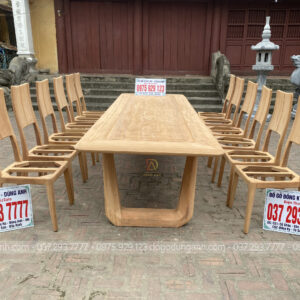 Bàn ghế hiện đại bọc đệm da chân trụ chữ U hai bên