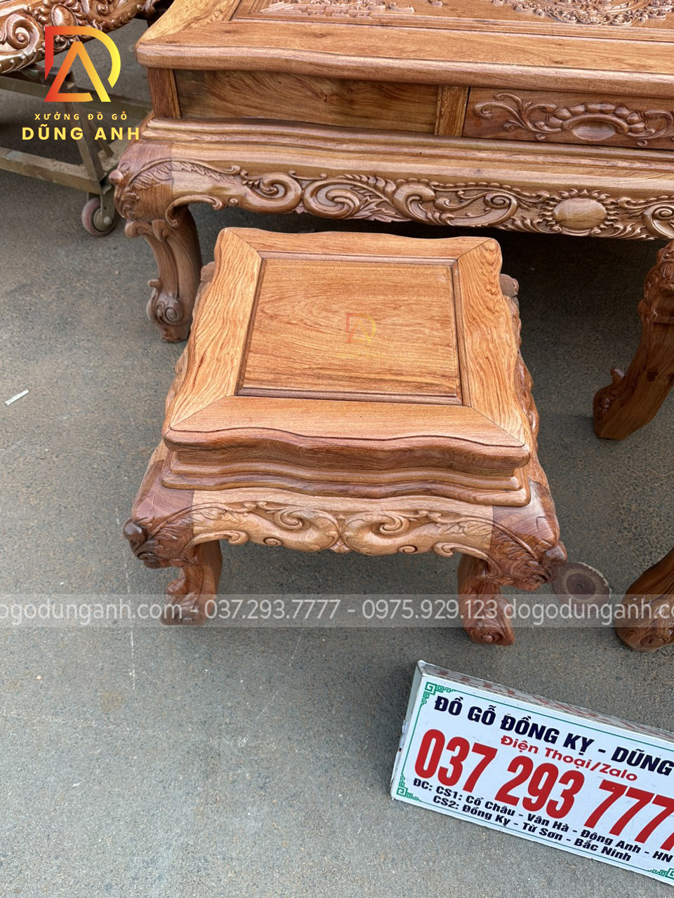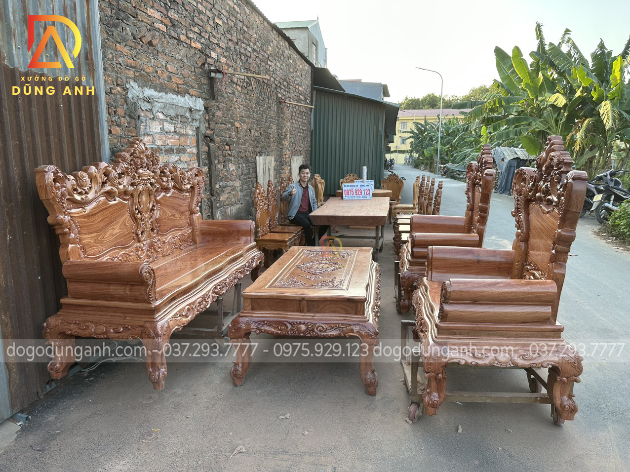 Đây là bộ bàn ghế hoàng gia chất liệu gỗ hương đá 6 món mẫu đục mới vừa được Xưởng đồ gỗ Dũng Anh đan trong quá trình hoàn thiện để về với khách hàng. Mời các bác cùng tham khảo.