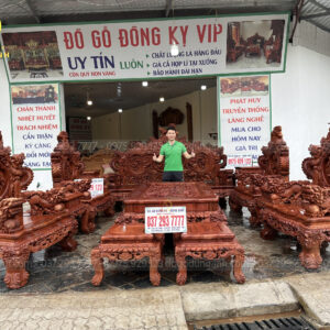Bộ bàn ghế Rồng đỉnh hoành tráng về kích thước, chất chơi từng đường vân gỗ; sắc nét từng chi tiết với hoạ tiết tứ linh được đục chạm kênh bong là một sản phẩm đáng mua cho các gia chủ yêu thích văn hoá cổ phương Đông.