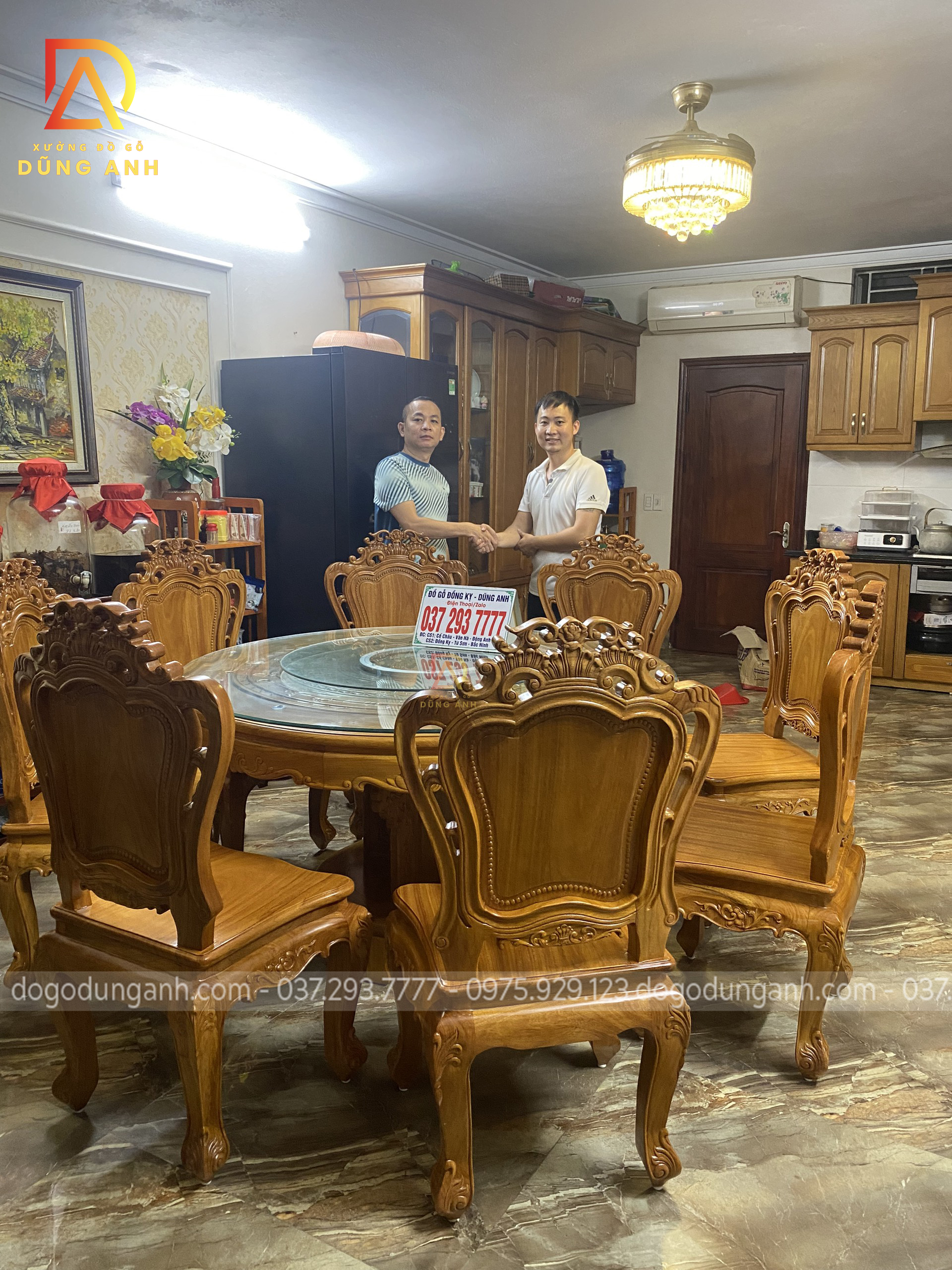 Bàn giao 8 ghế Louis Hoàng Gia + bàn tròn Trống Đồng về với anh Tuyền – Bắc Ninh.