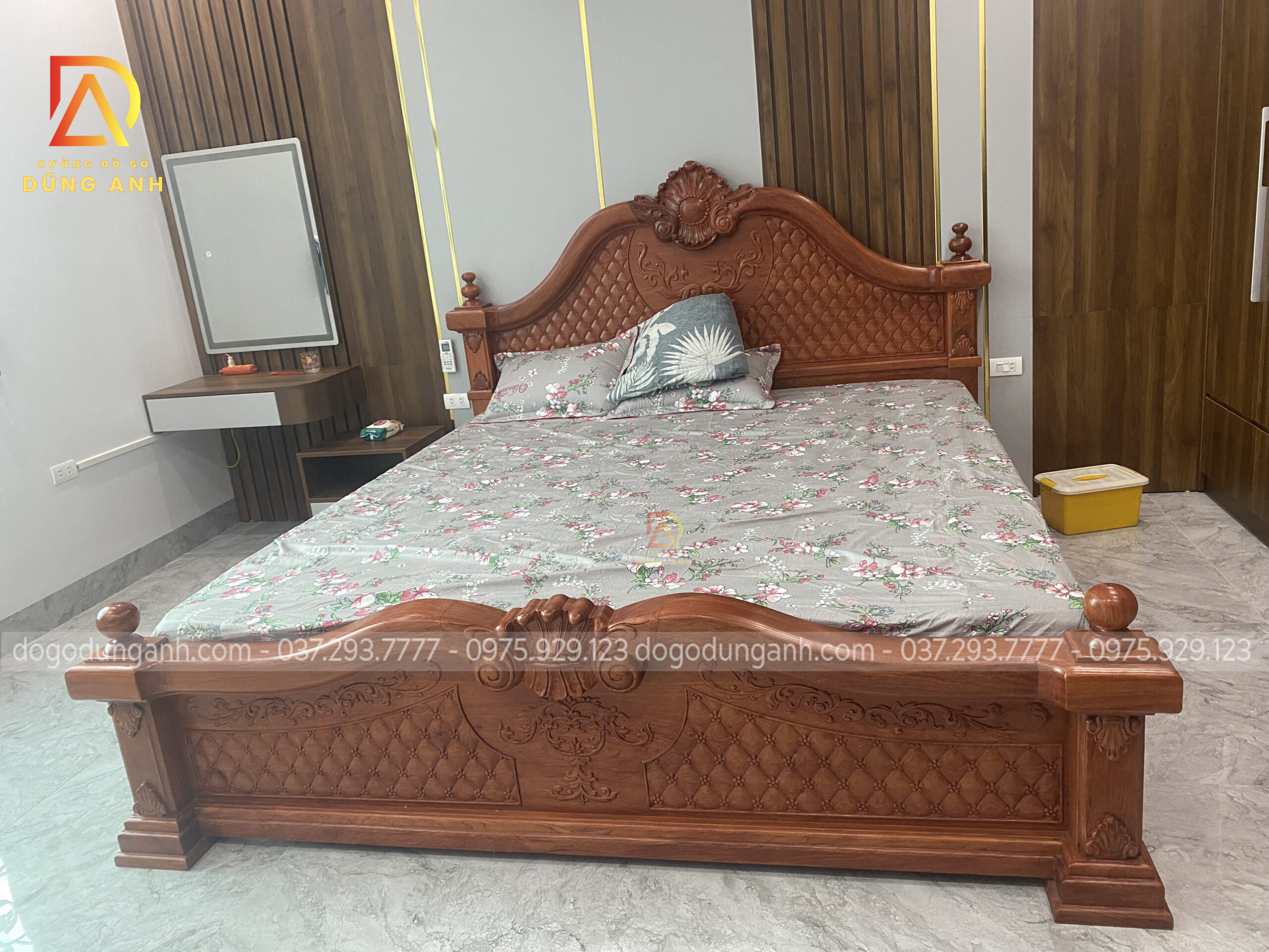 Bản tựa liền 1 tấm được đục trạm 3 vông hoa hồng cực kì chi tiết và tỉ mỉ