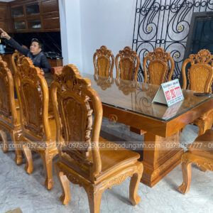 Bộ sản phẩm 10 ghế Louis Hoa Hồng kết hợp với bàn nguyên khối chất liệu gỗ Gõ Đỏ cao cấp của anh Hân đến từ Bát Tràng – Gia Lâm :