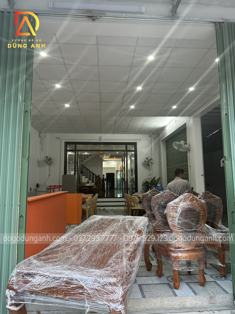 Do có nhu cầu tìm một bộ sản phẩm bàn ghế ăn chất lượng và uy tín thì vợ chồng anh Dũng ở tp Nam Định đã tìm hiểu và tới trực tiếp với Xưởng đồ gỗ Dũng Anh để đặt mua một bộ bàn ghế ăn cho căn phòng bếp cho ngôi nhà mình. Sau khi nói chuyện và được Xưởng đồ gỗ Dũng Anh bên em tư vấn chọn một bộ sản phẩm phù hợp với nhà mình thì anh chị đã quyết định chọn bộ sản phẩm 6 ghế hoàng gia có tay kết hợp bàn củ lạc gỗ Gõ Đỏ