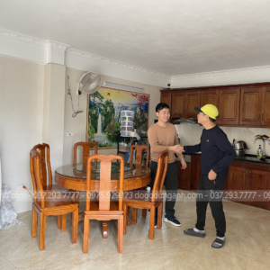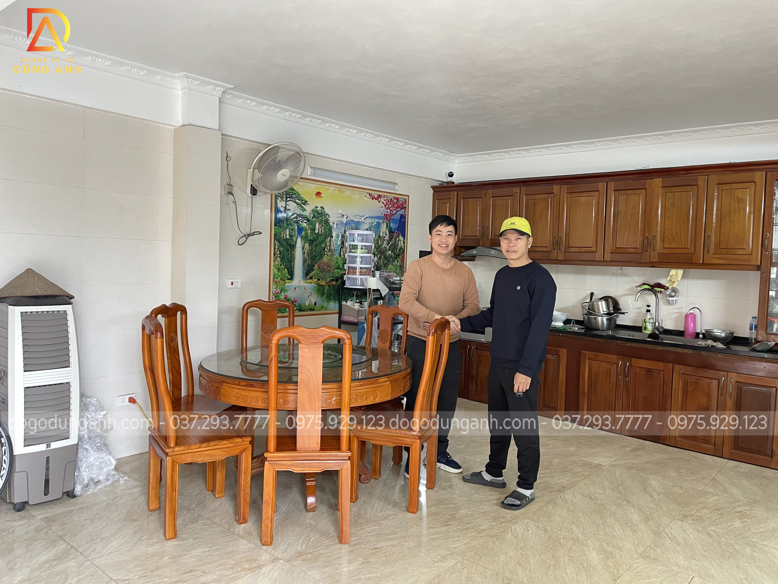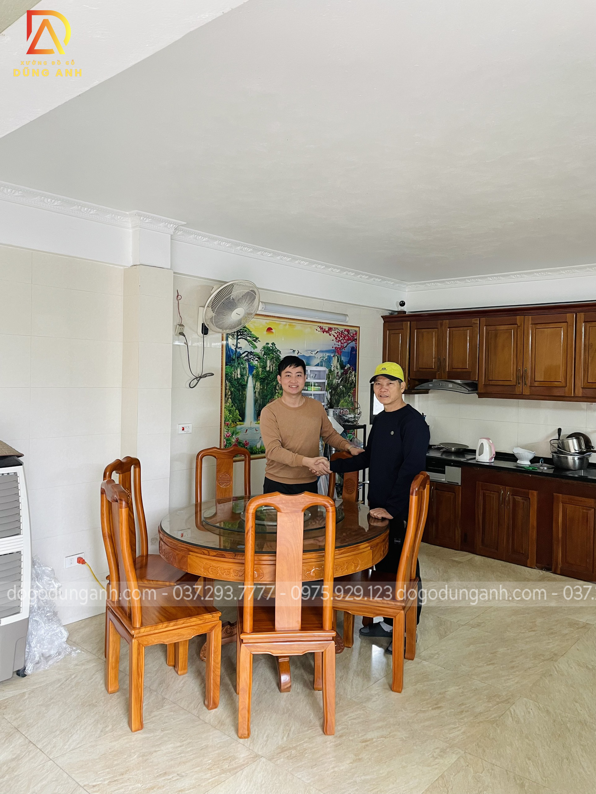 Bàn giao bộ sản phẩm Bàn Tròn + 6 ghế mẫu triện thọ cho khách hàng ở Thanh Trì.