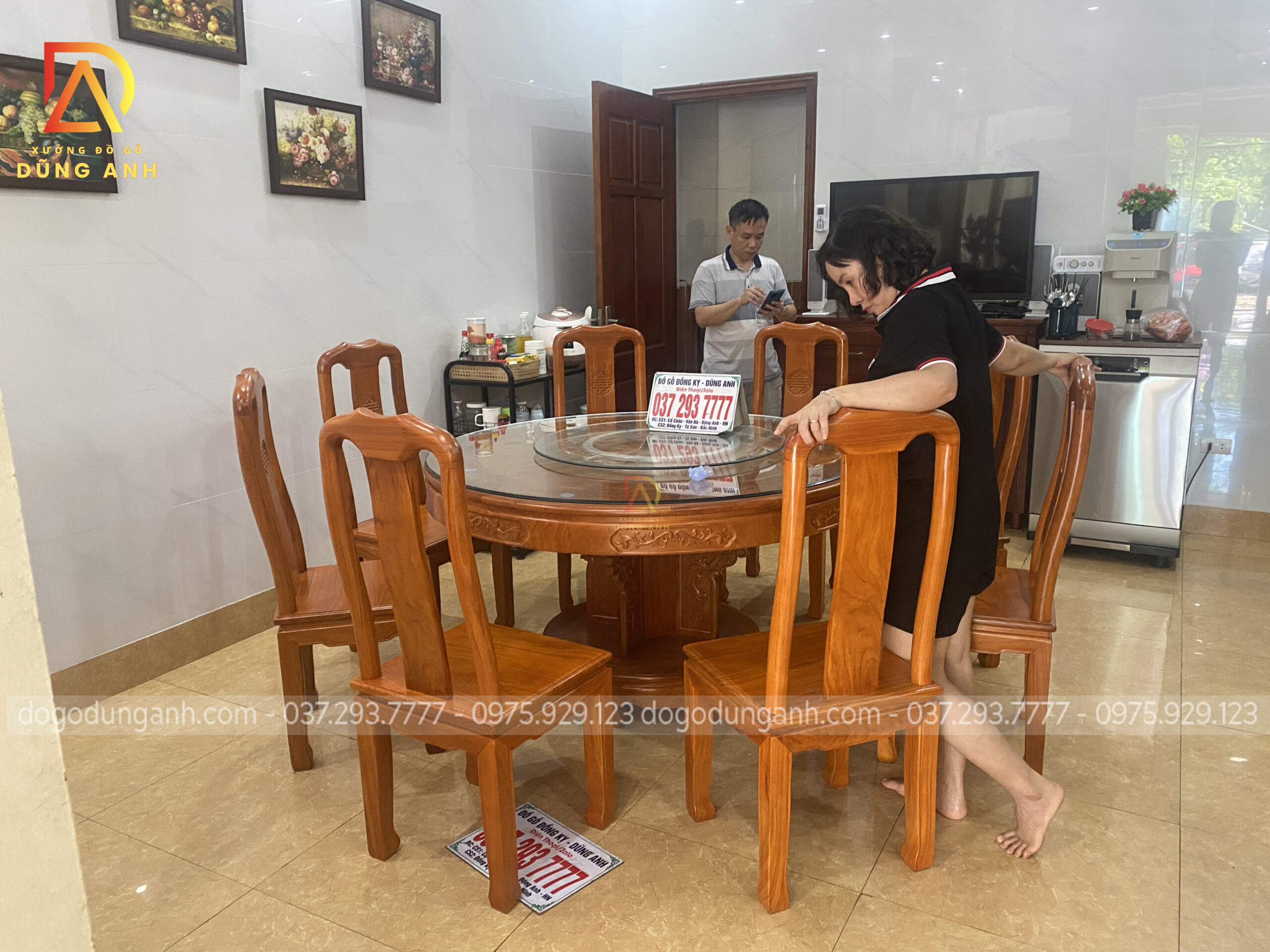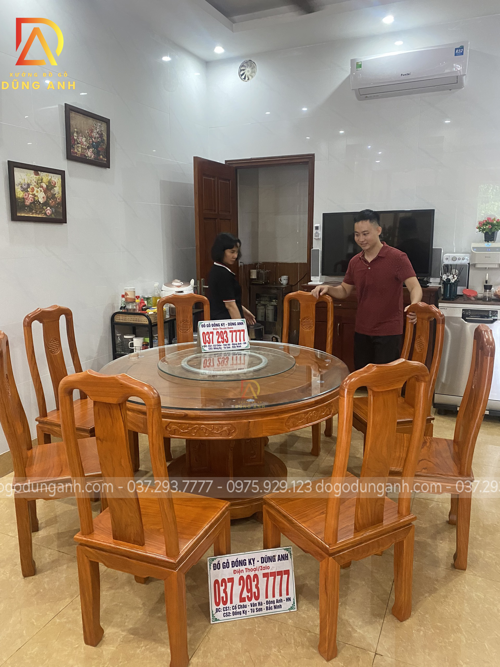 Bàn giao bộ sản phẩm ghế ăn Triện Thọ với kết hợp với bàn Tròn Trụ Cánh Gà cho anh David Trần ở Tp Bắc Ninh