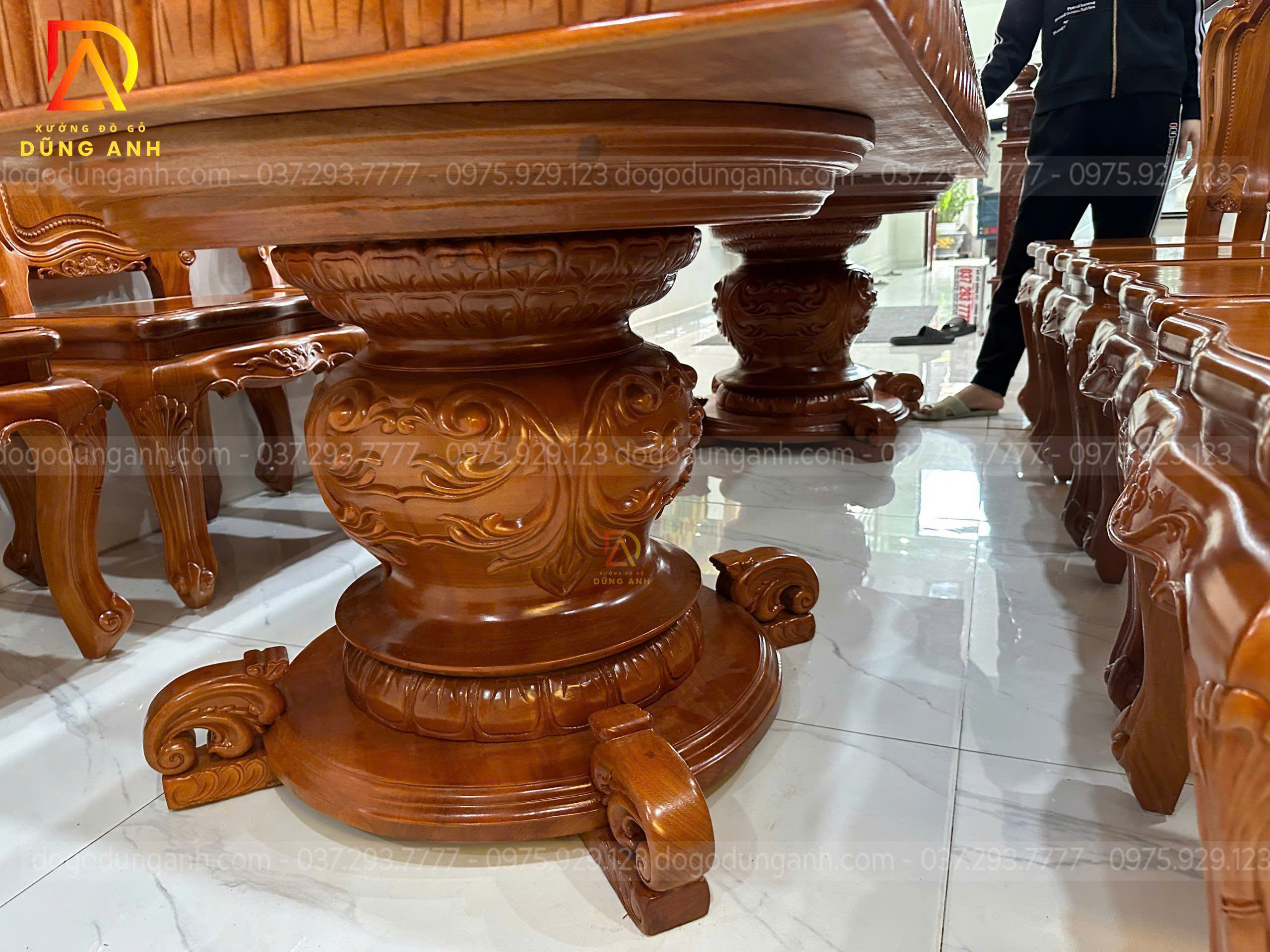 chân trụ còn sở hữu 4 chiếc chân chó vô cùng chắc chắn và mạnh mẽ, tuy là được đục bằng CNC nhưng mà đã được các nghệ nhân đã đục tỉa lại bằng những đôi bàn tay hàng chục năm kinh nghiệm để làm hài lòng mọi khách hàng đã tin tưởng và lựa chọn đồ của Xưởng đồ gỗ Dũng Anh