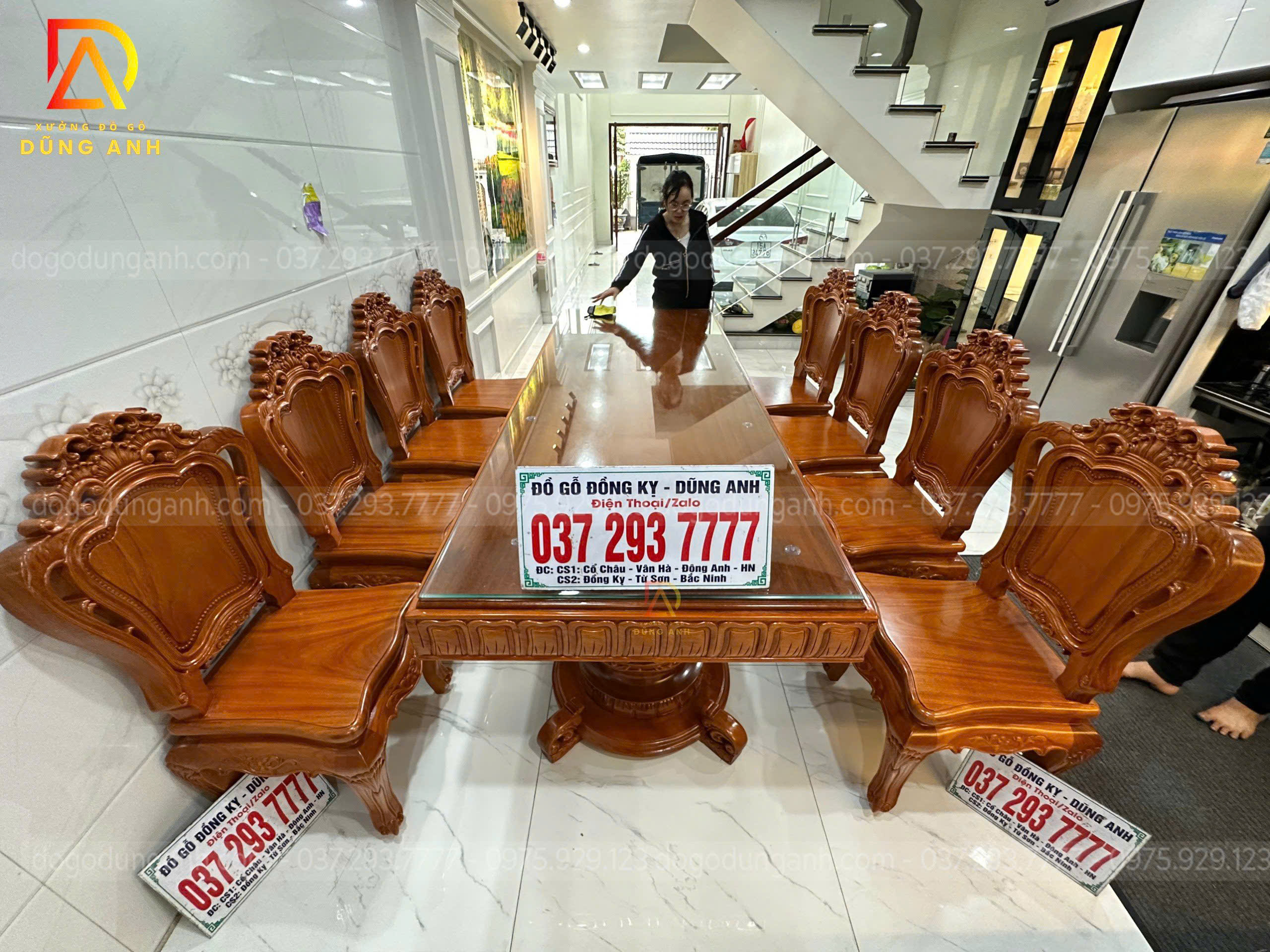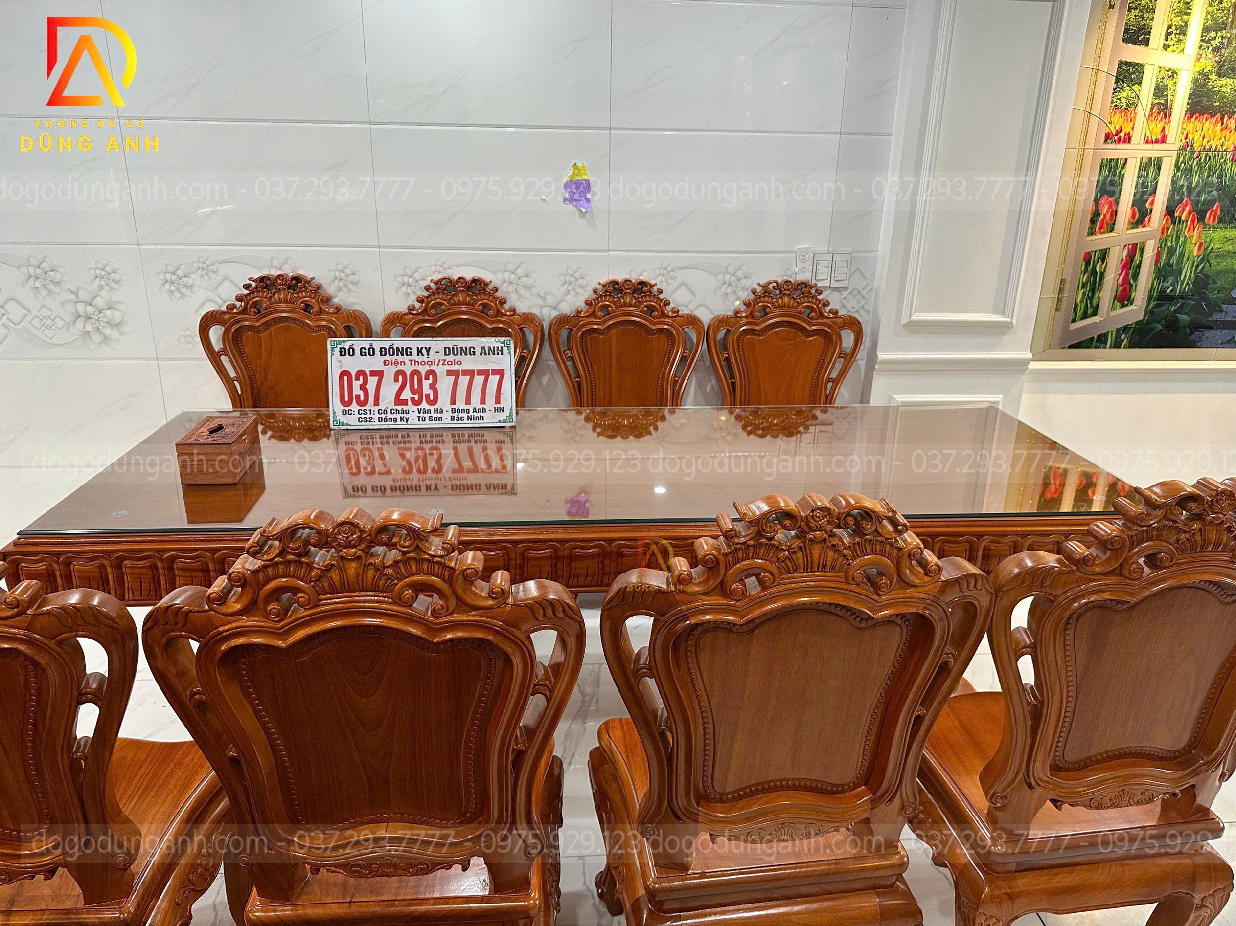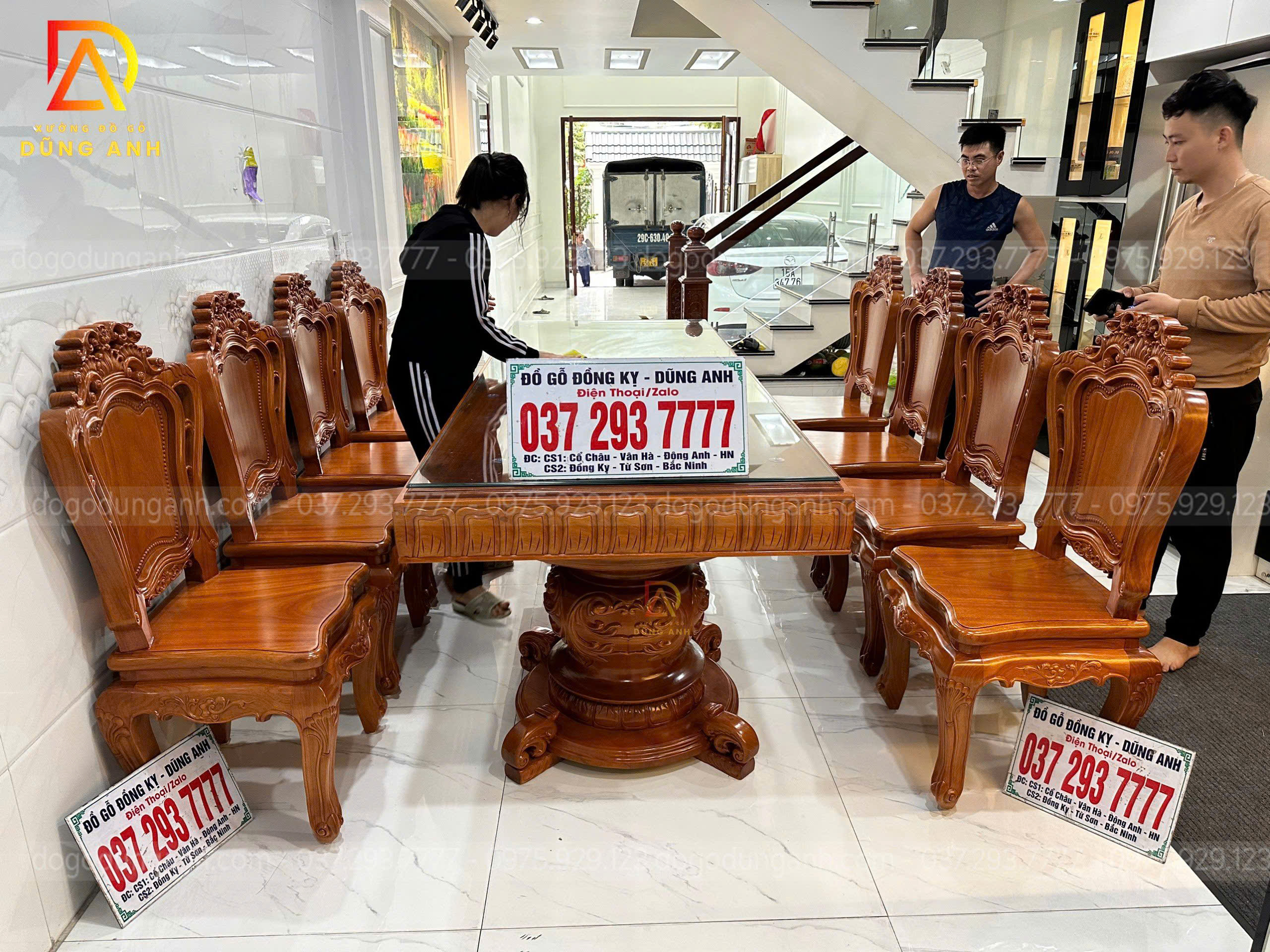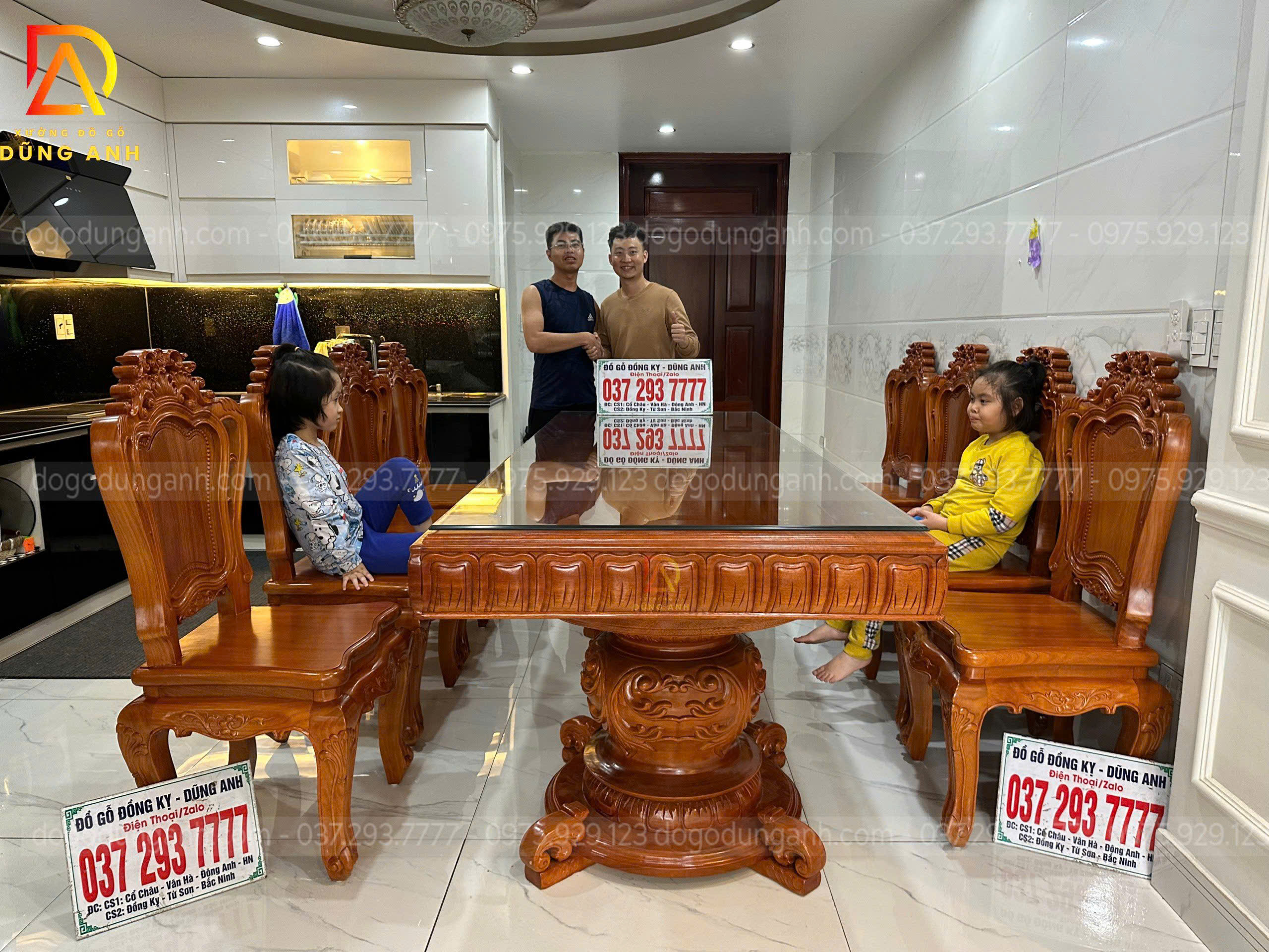 Bàn giao sản phẩm 8 ghế Louis Hoàng Gia kết hợp bàn nguyên khối – gỗ Gõ Đỏ (anh Phúc – Hải Phòng)