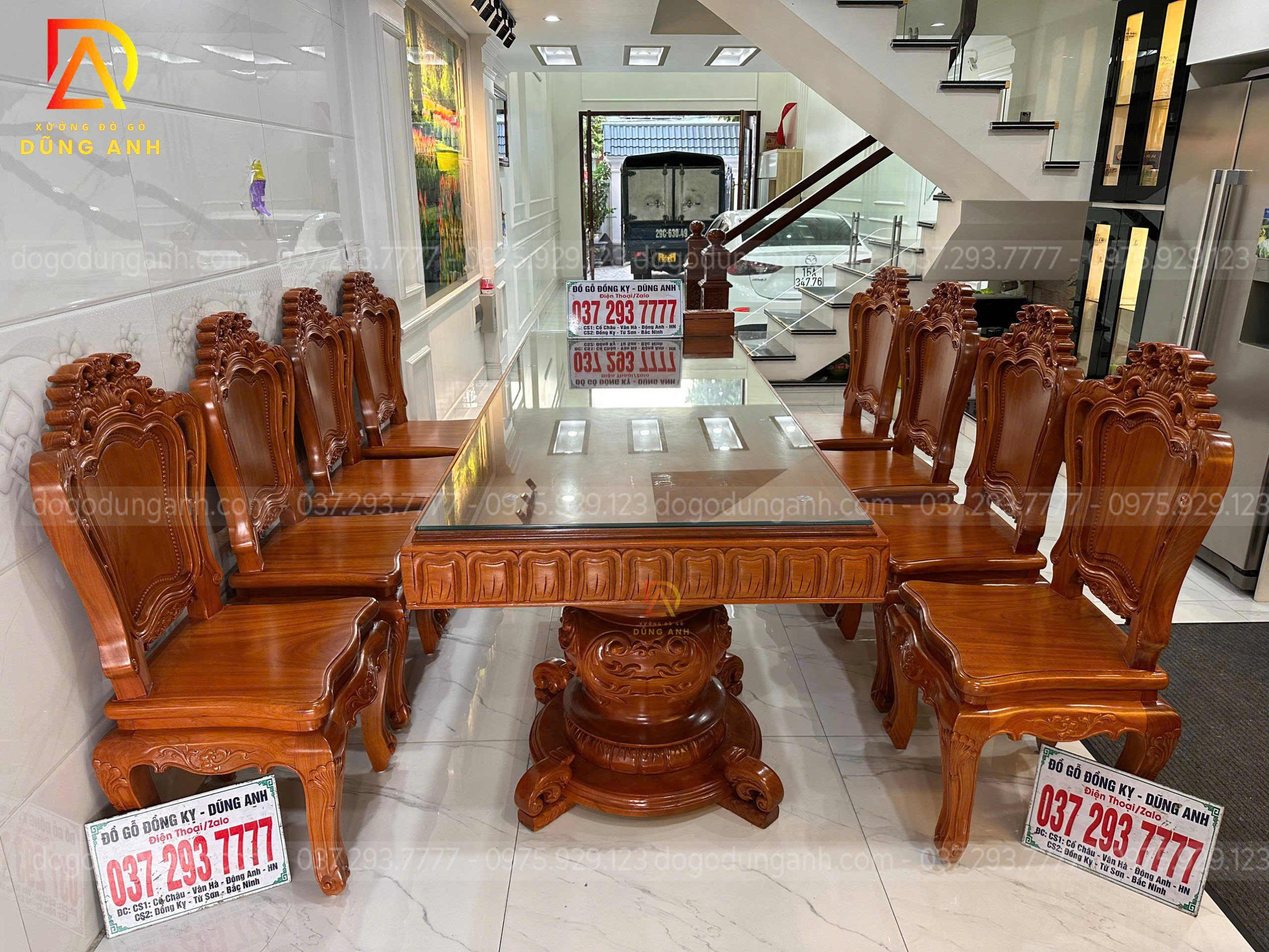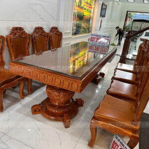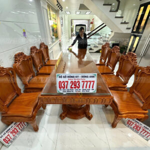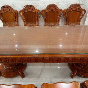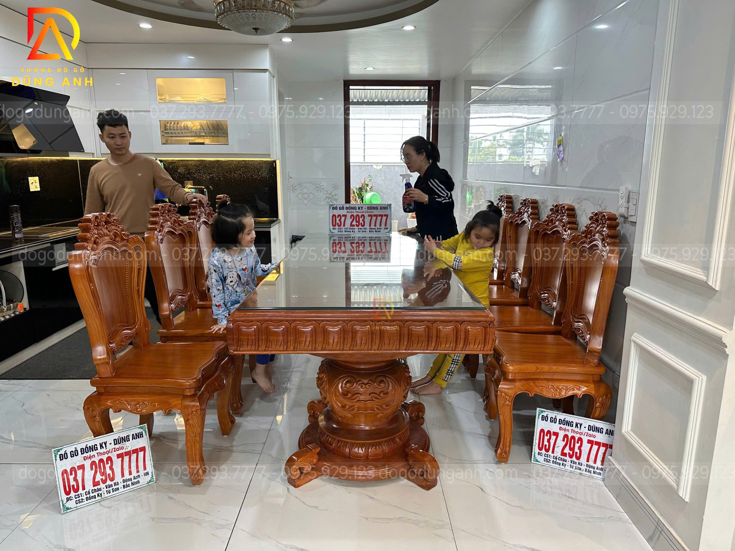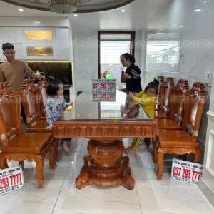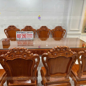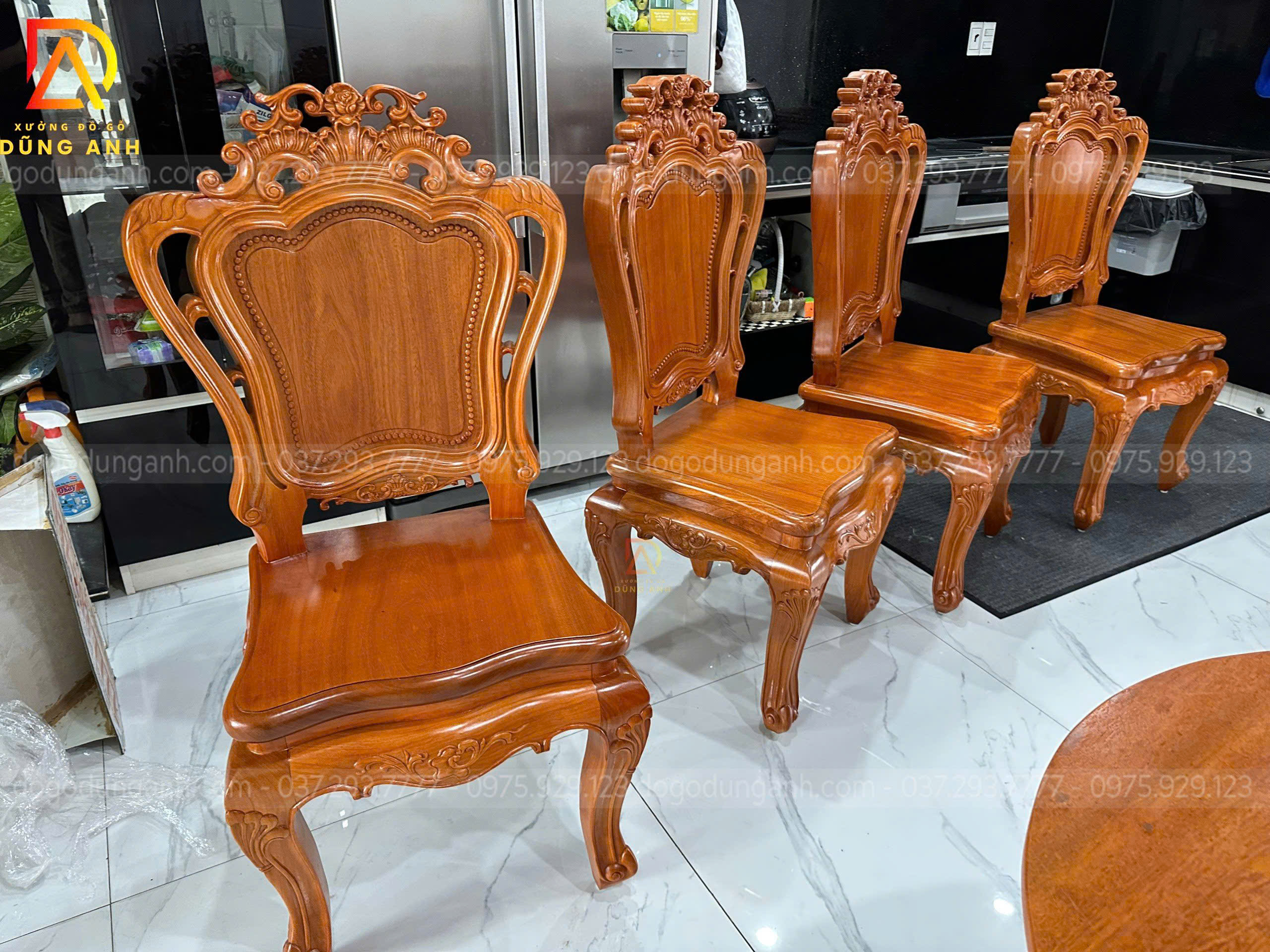 Bàn giao sản phẩm 8 ghế Louis Hoàng Gia kết hợp bàn nguyên khối – gỗ Gõ Đỏ (anh Phúc – Hải Phòng)
