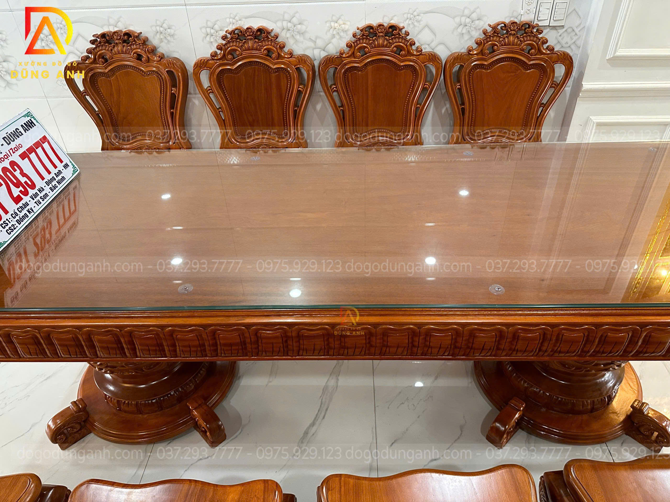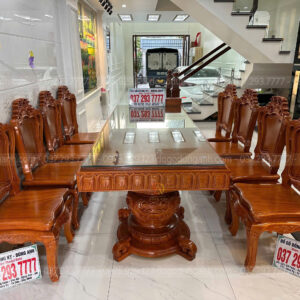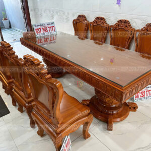 Sự kết hợp hài hòa giữa bàn nguyên khối lớn và 8 chiếc ghế Louis tinh xảo không chỉ tạo nên sự thoải mái, thuận tiện cho cả gia đình trong những bữa ăn hàng ngày, mà còn nâng tầm không gian sống trở nên đẳng cấp và ấn tượng hơn bao giờ hết.