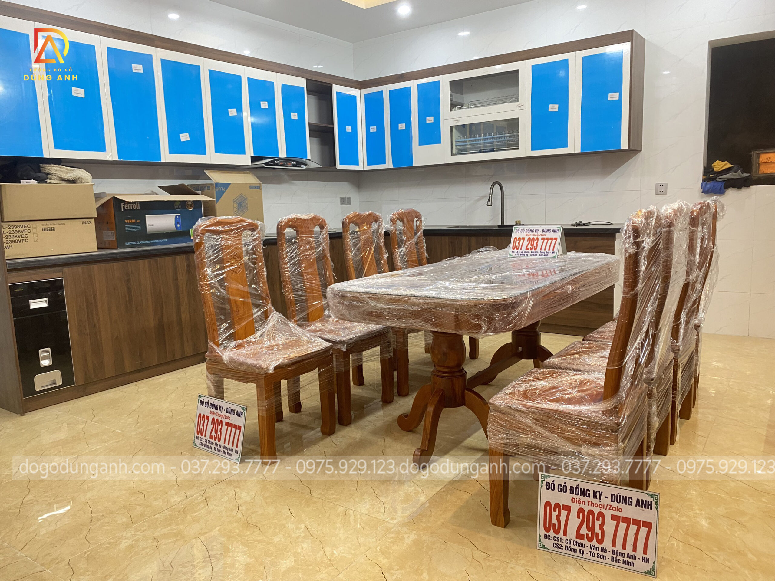 - Bộ bàn ghế được sử dụng cho 6-8 người ngồi, rất phù hợp với những khách hàng yêu phong cách truyền thống và nhà bếp có diện tích vừa phải.