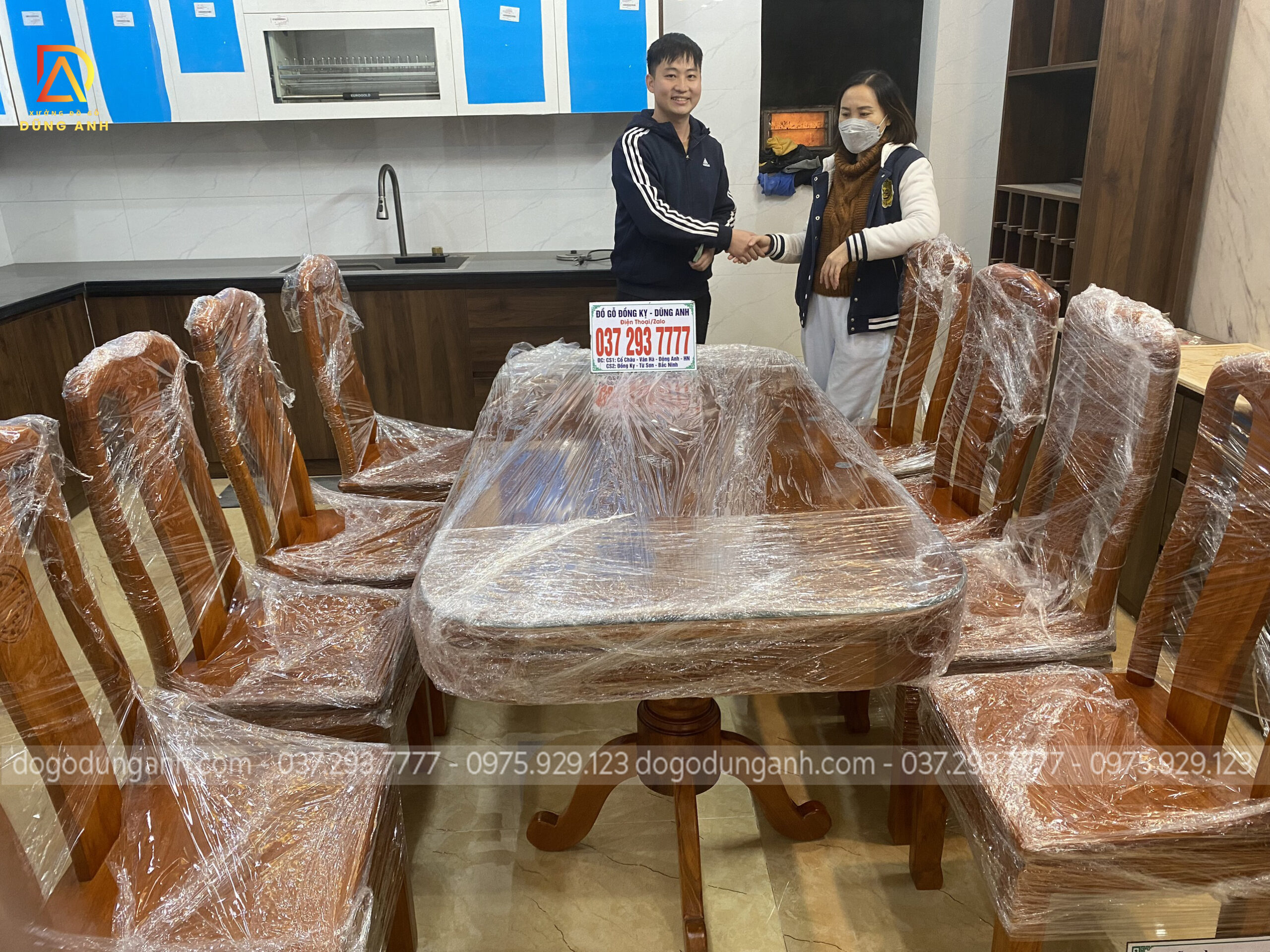 Như quý khách có thể thấy, ván bàn liền nguyên khối đẳng cấp, vân bàn tự nhiên vô cùng đẹp, phải mất rất nhiều công sức mới có thể chọn lọc cũng như hoàn thiện được mặt bàn đẹp như thế này, chắc hẳn khi nhìn thấy bộ sản phẩm này anh Tú sẽ rất rất hài lòng về bộ sản phẩm.