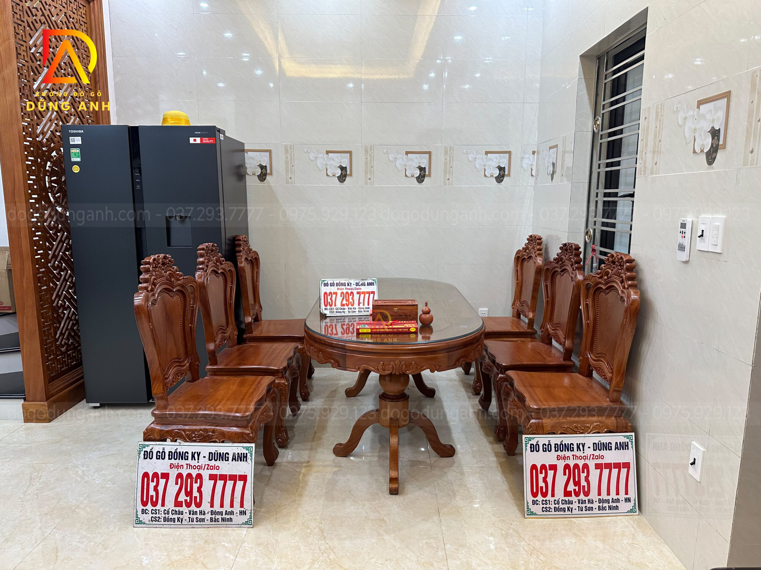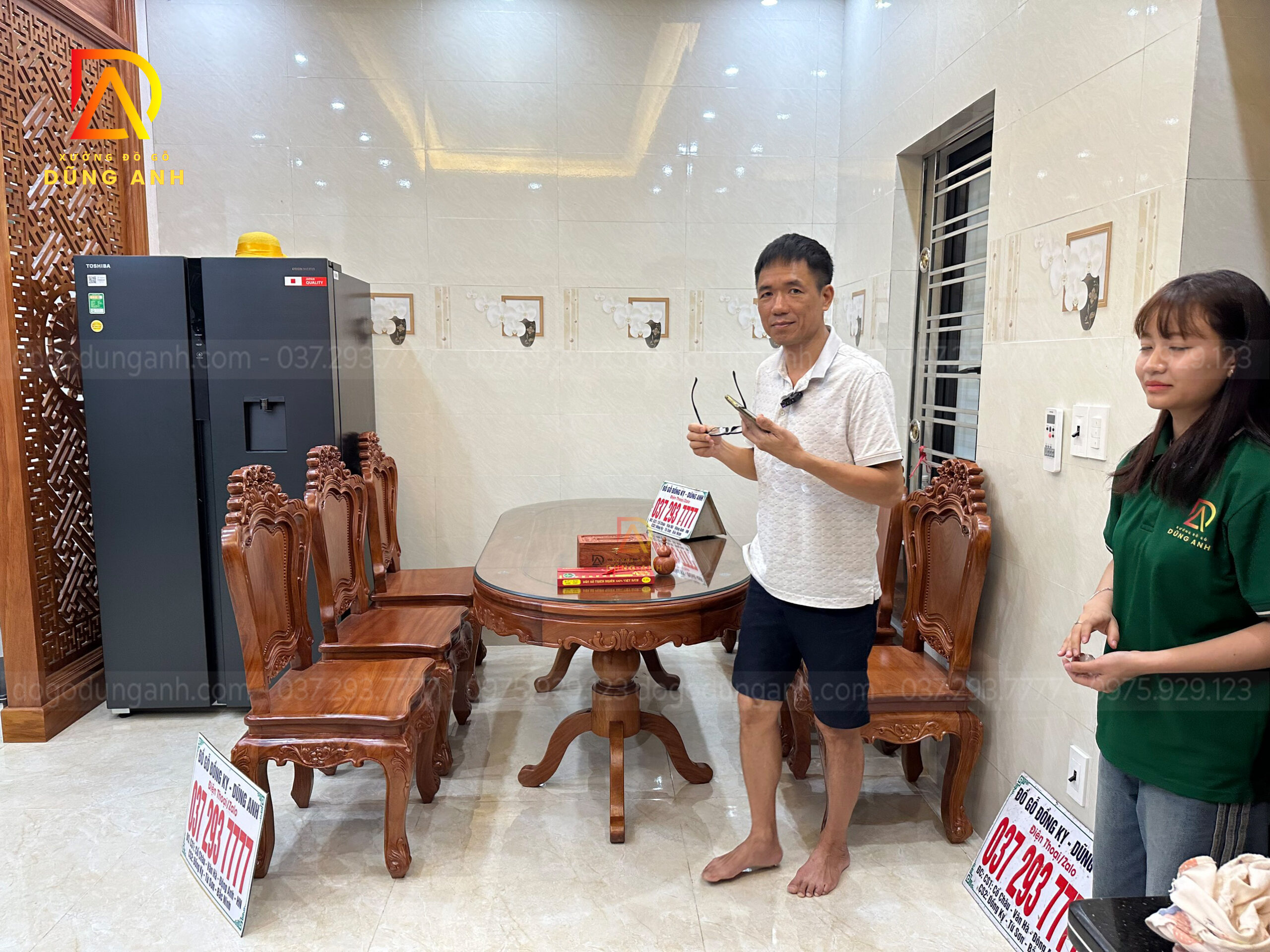 Khi tìm kiếm một bộ bàn ghế ăn vừa chất lượng vừa mang tính thẩm mỹ cao cho không gian phòng khách và phòng ăn của mình, cô chú đã nhanh chóng lựa chọn Xưởng đồ gỗ Dũng Anh làm điểm đến. Qua cuộc gọi Facetime trực tiếp, cô chú không chỉ nhận được sự tư vấn tận tình mà còn cảm nhận được tâm huyết và chuyên môn của đội ngũ tại đây. Cuối cùng, sau khi cân nhắc kỹ lưỡng, cô chú đã quyết định chọn bộ sản phẩm 6 ghế Louis hoàng gia cùng bàn yếm đục tinh xảo và bộ bàn ghế nghê bảo đỉnh VIP, tất cả đều được chế tác từ gỗ gõ đỏ chất lượng, hứa hẹn mang đến vẻ đẹp và sự sang trọng cho ngôi nhà.