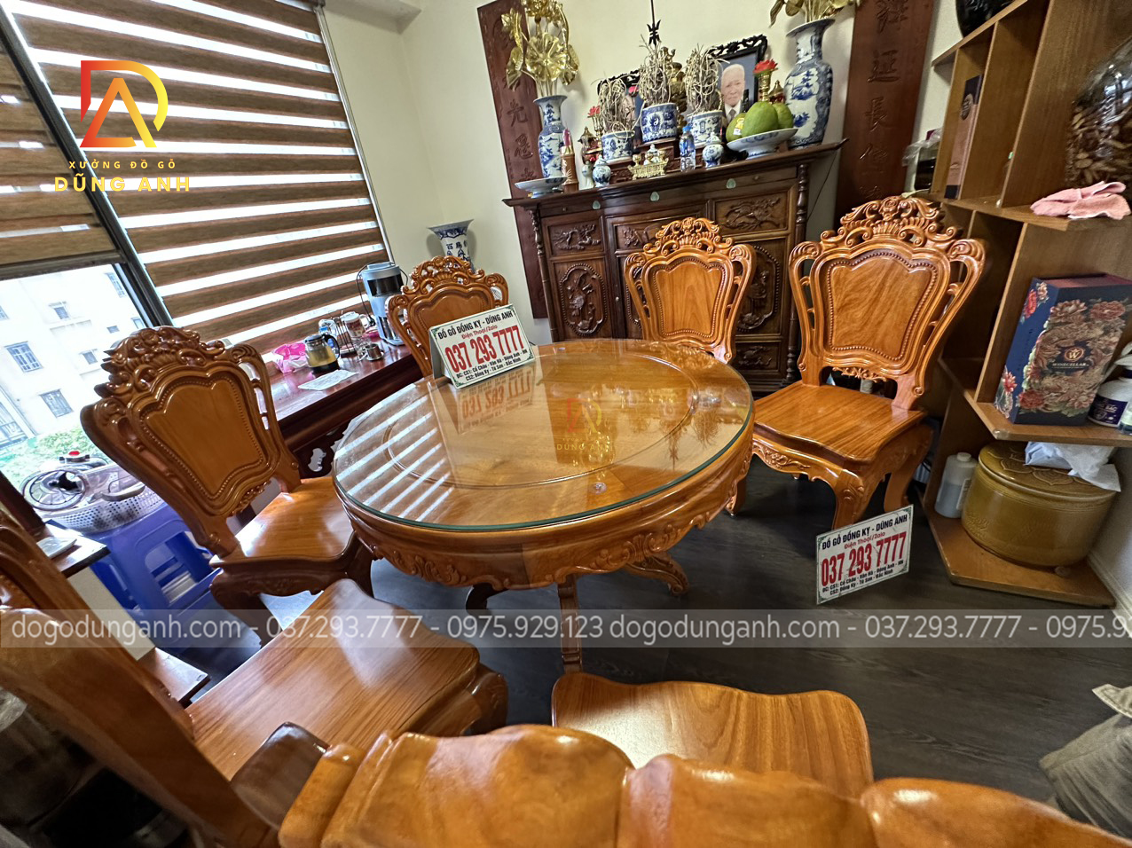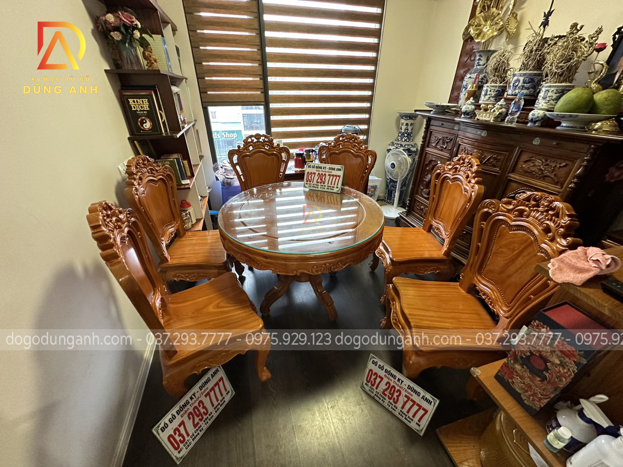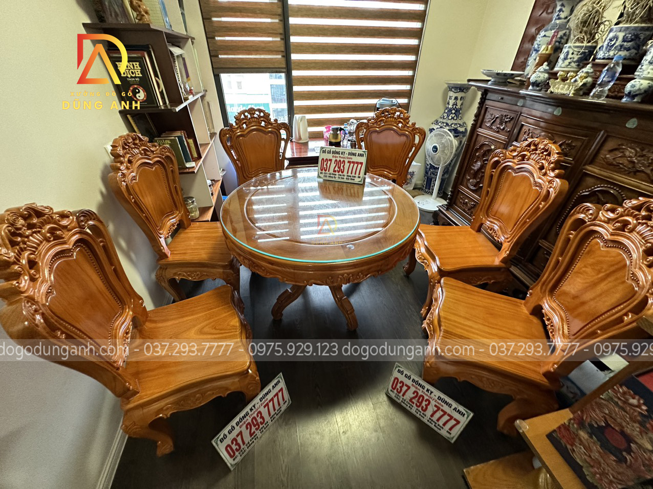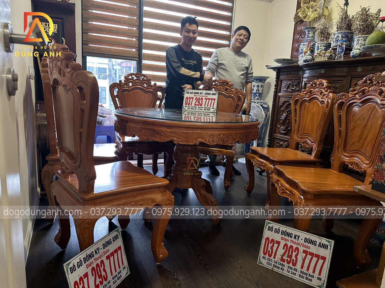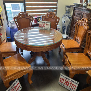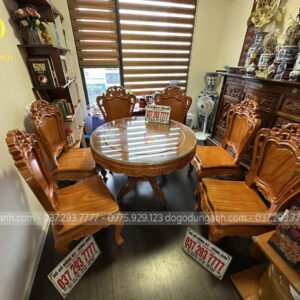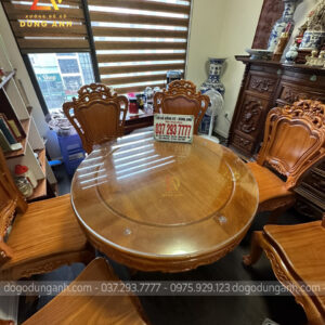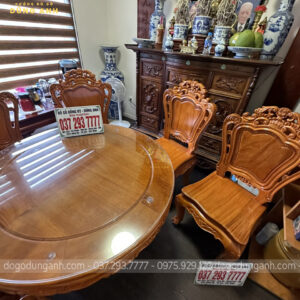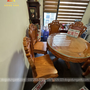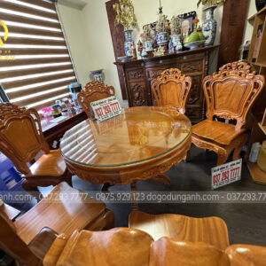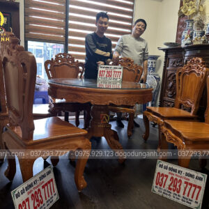 Bàn giao sản phẩm 6 ghế Louis Hoàng Gia đục 2 mặt kết hợp bàn tròn vén góc – gỗ Gõ Đỏ (anh Ngọc, chị Lan-Minh Khai)