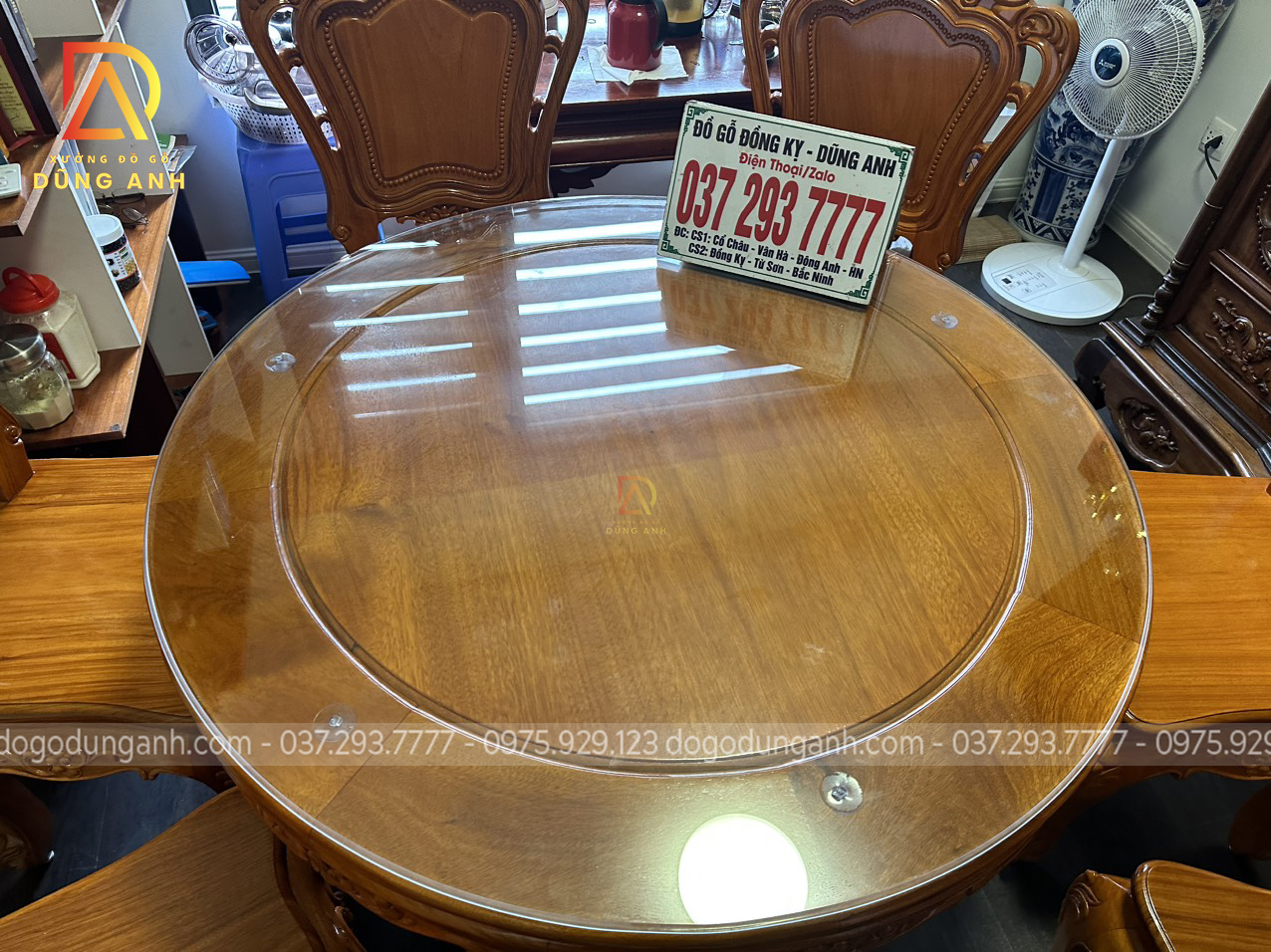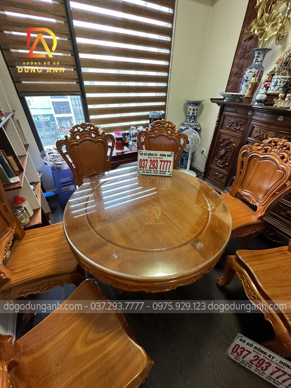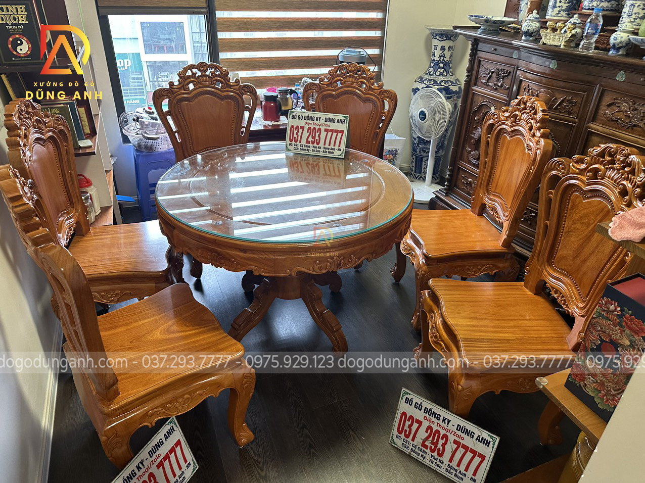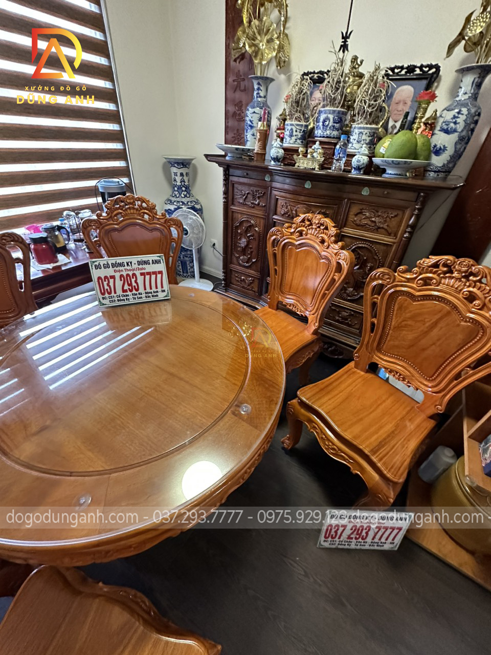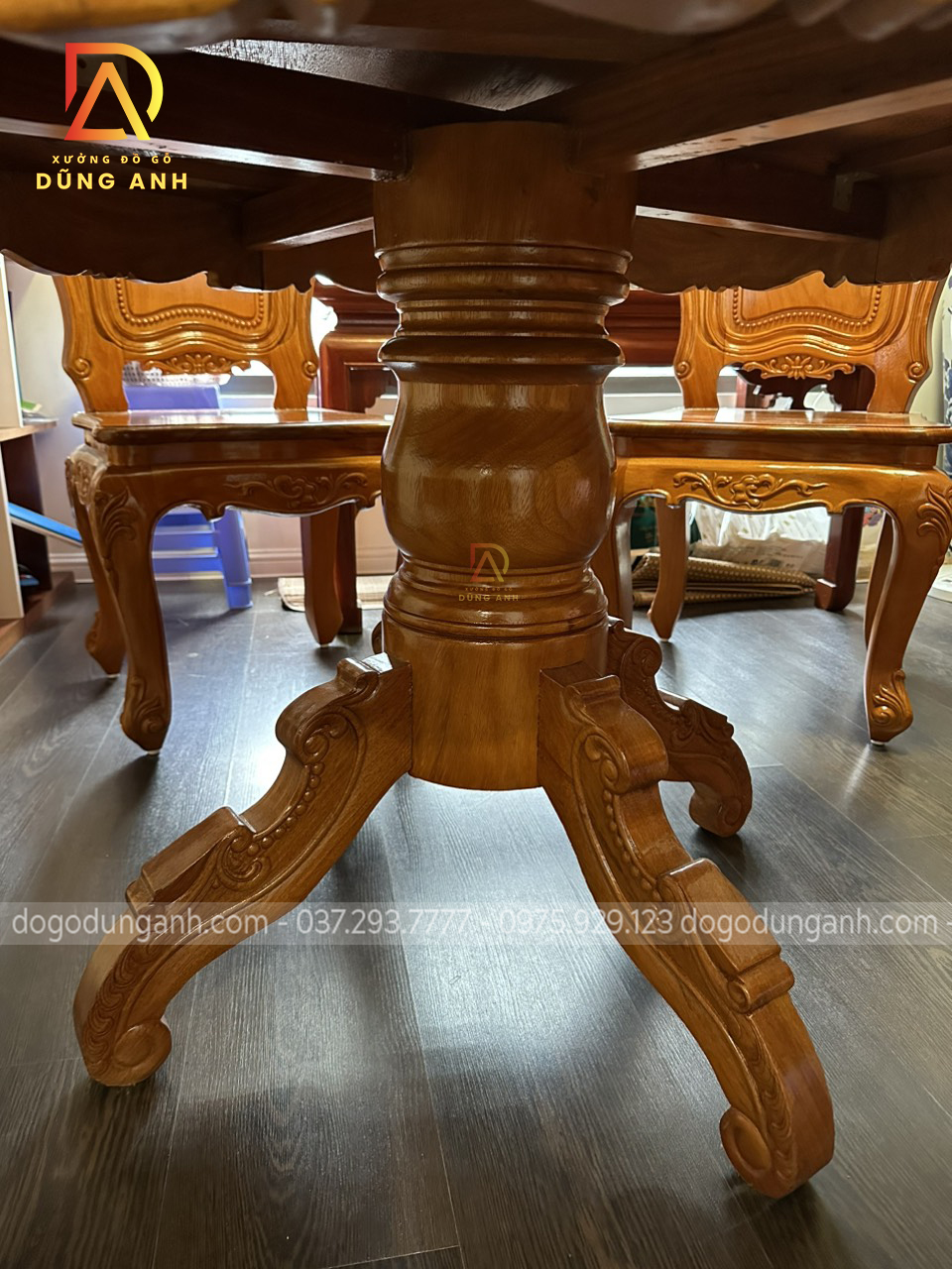 Bàn giao sản phẩm 6 ghế Louis Hoàng Gia đục 2 mặt kết hợp bàn tròn vén góc – gỗ Gõ Đỏ (anh Ngọc, chị Lan-Minh Khai)