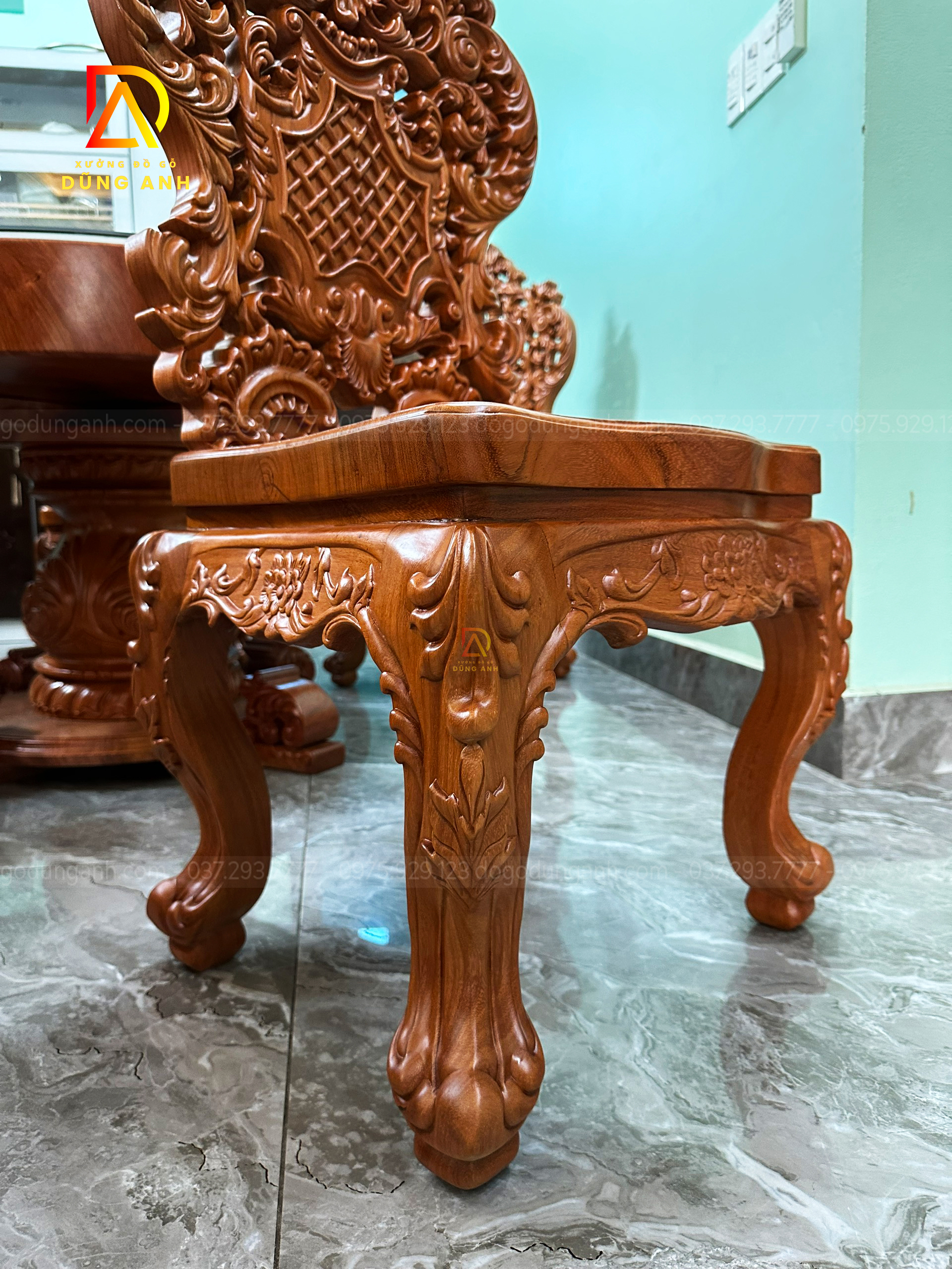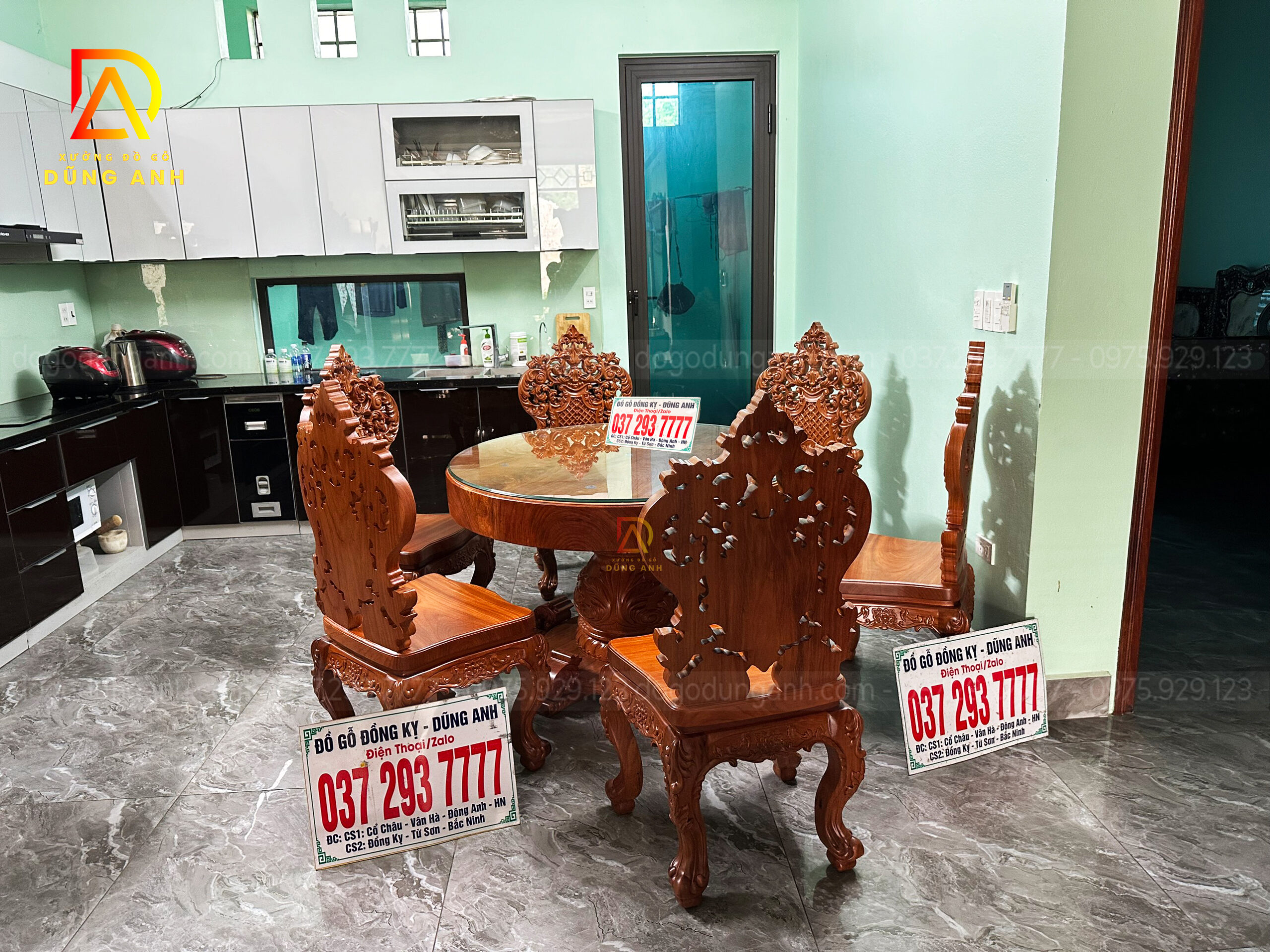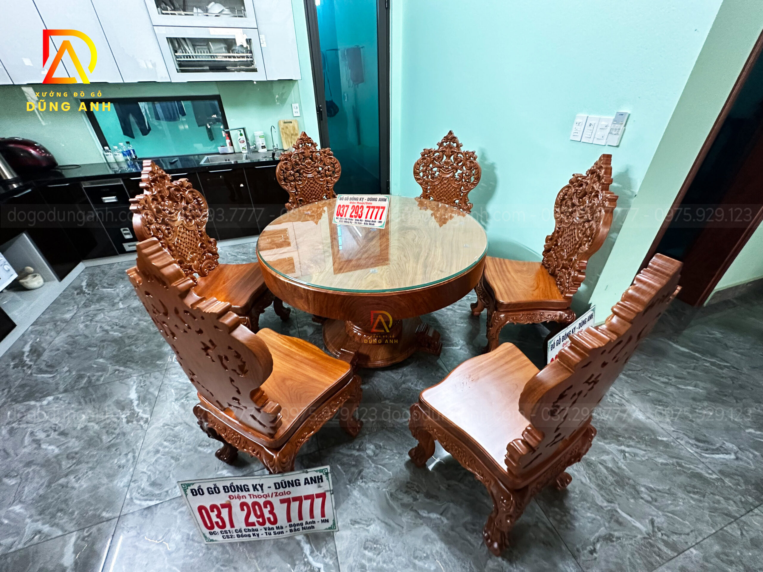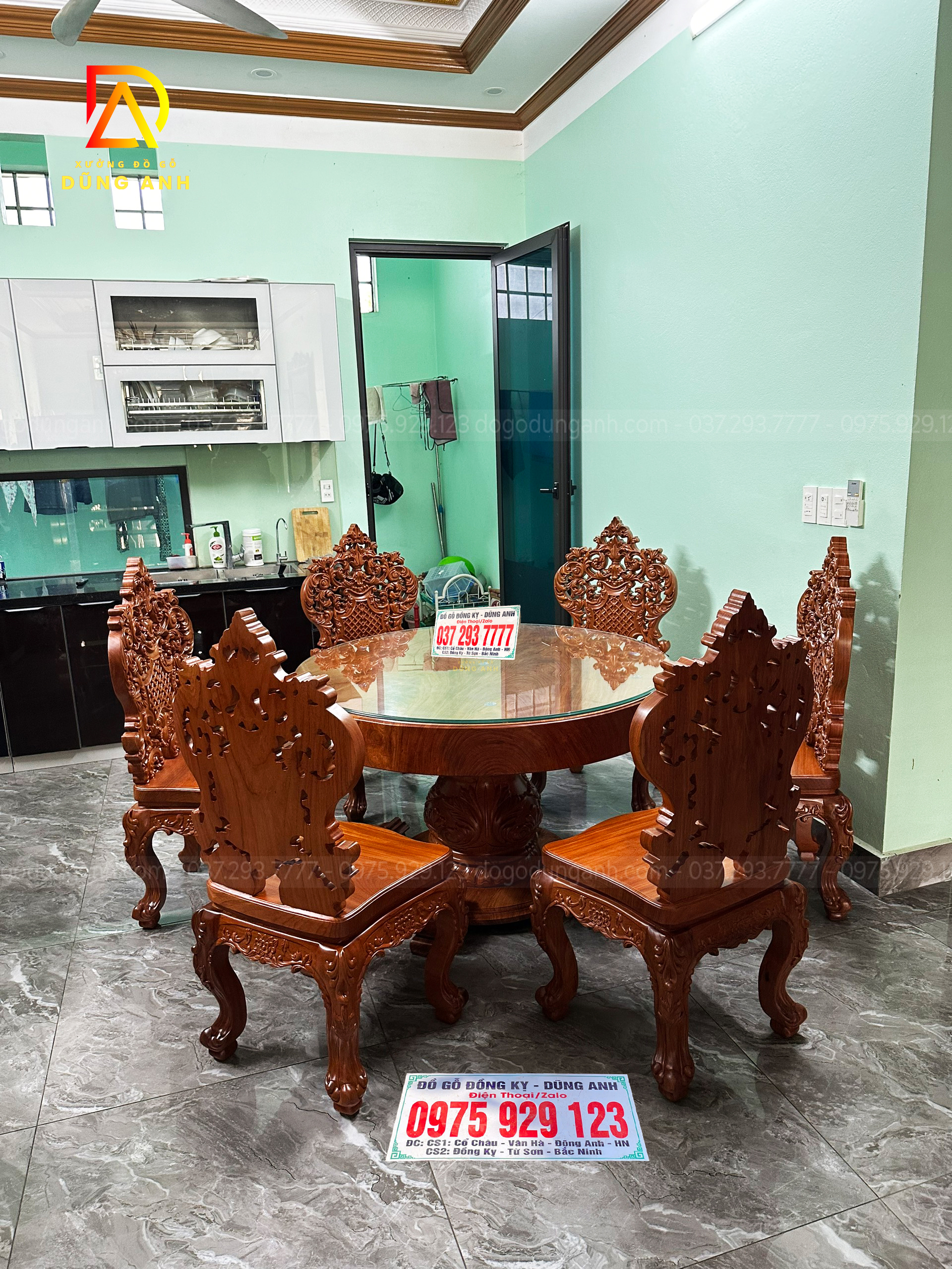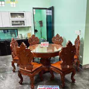 Bàn giao SIÊU PHẨM 6 ghế Louis Caro Tân Cổ + bàn tròn nguyên khối – Gia đình bác Tuấn ( Vĩnh Phúc )