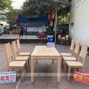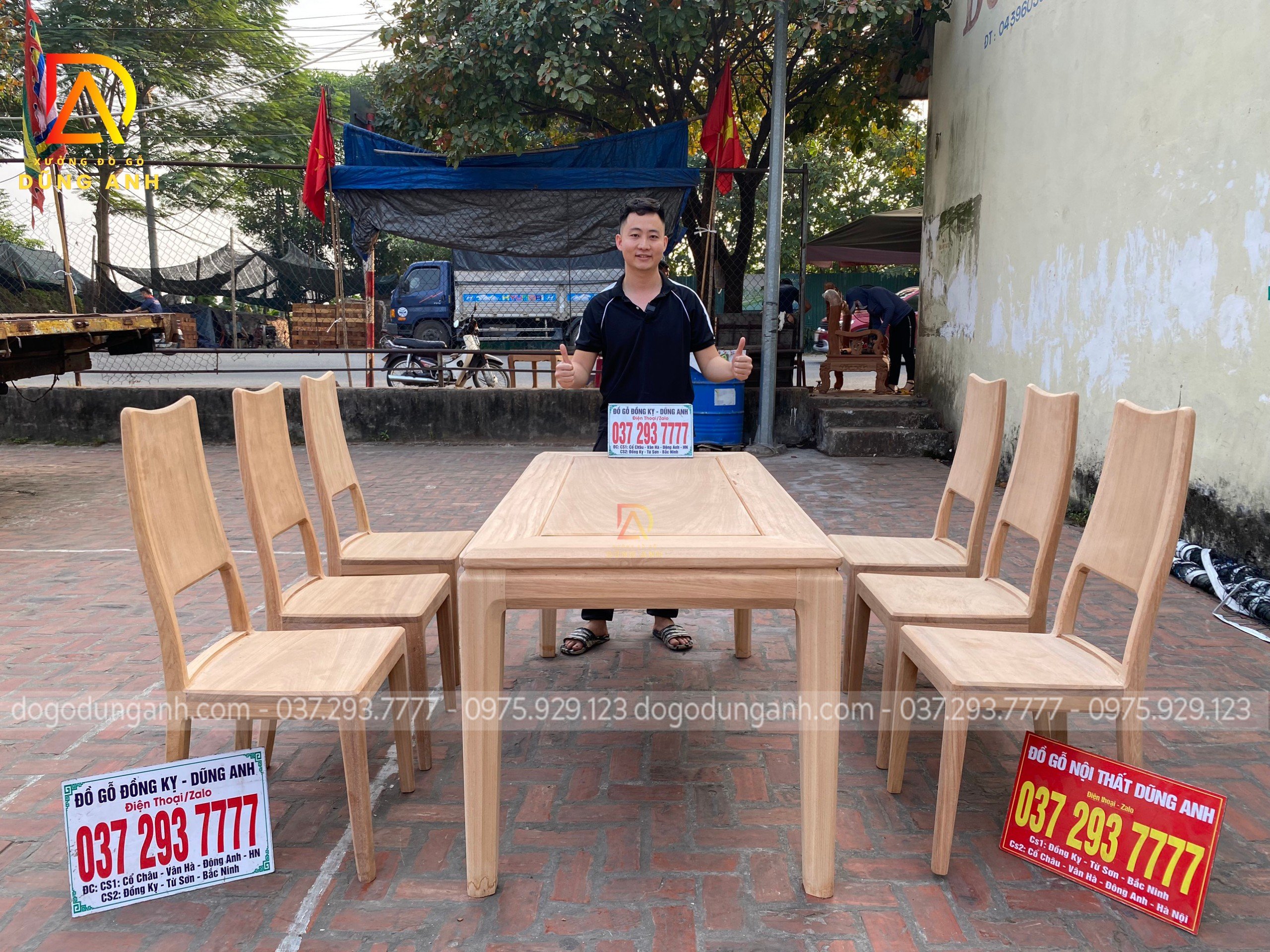 Toàn bộ sản phẩm này được Xưởng đồ gỗ Dũng Anh làm từ gỗ Gõ Đỏ tự nhiên cao cấp với mặt bàn dày. Mặt bàn cũng được làm với kích thước đủ cho 6 đến 8 người ăn thoải mái. Bề mặt bàn được làm từ gỗ tự nhiên lên vân rất đẹp và sáng.
