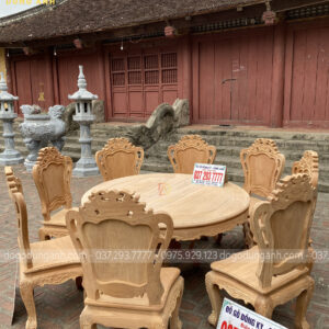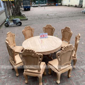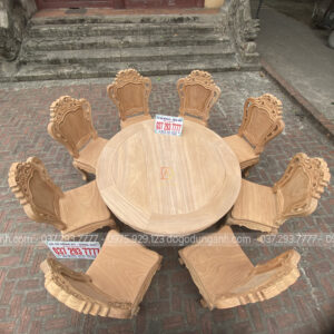 - Bộ sản phẩm 8 ghế Louis Hoàng Gia kết hợp cùng bàn tròn gỗ Gõ Đỏ
