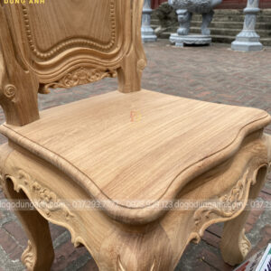 Mẫu ghế ăn louis hoàng gia được lấy cảm hứng từ phong cách tân cổ điển Châu Âu với những hoạ tiết đục chạm hoa hồng, hoa lan tây làm chủ đạo. Đường nét đục khắc tinh tế, kênh bong trên đỉnh chương, yếm ghế và chân ghế đã mang lại vẻ đẹp nổi bật cuốn hút người nhìn.