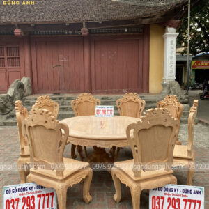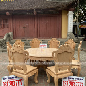 Bản mộc bộ sản phẩm 8 ghế Louis Hoàng Gia kết hợp cùng bàn tròn gỗ Gõ Đỏ cực Vip