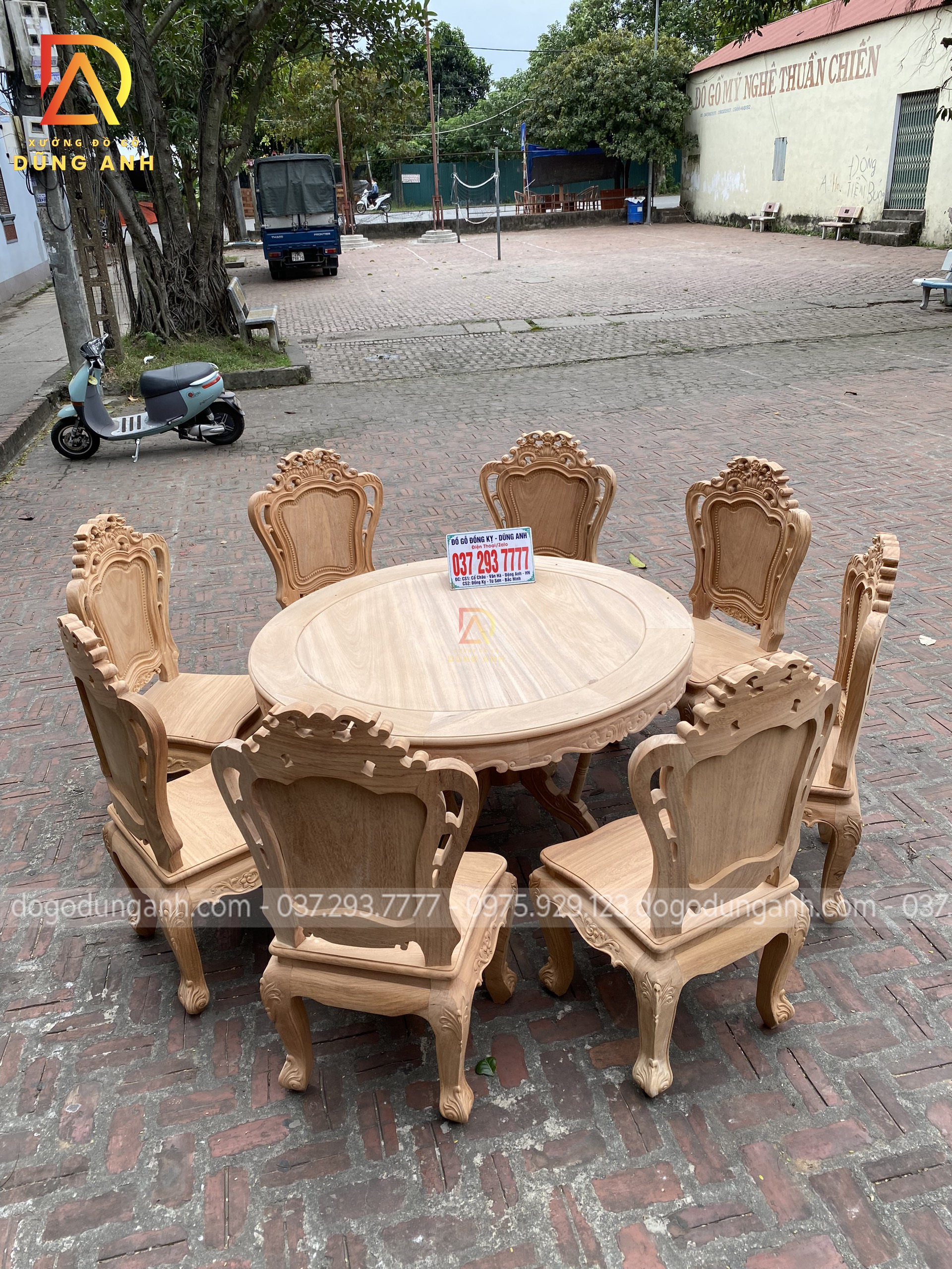 Quý khách có thể tham khảo thêm các mẫu bàn ghế ăn đẹp, bàn ghế ăn nguyên khối, các mẫu ghế ăn đẹp thì có thể liên hệ ngay với Xưởng đồ gỗ Dũng Anh qua: