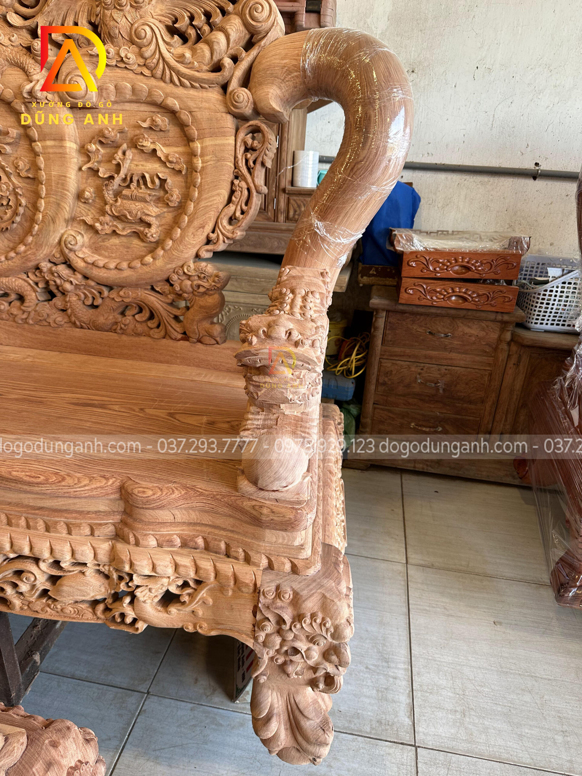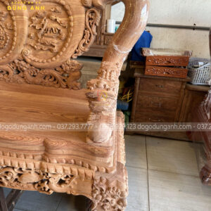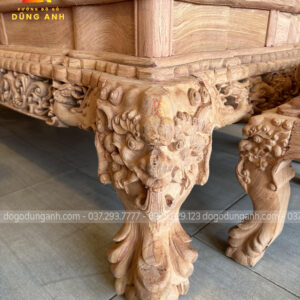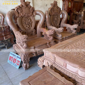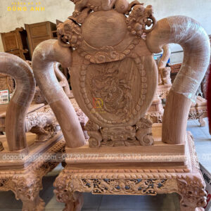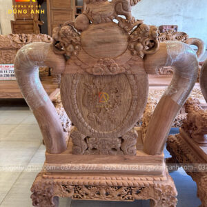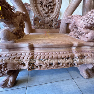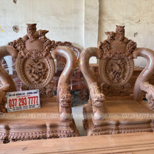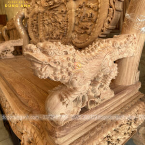 Tay ghế đục hình tượng nghê ngậm ngọc nguyên con được đục tay thủ công vô cùng chi tiết, sống động như thật