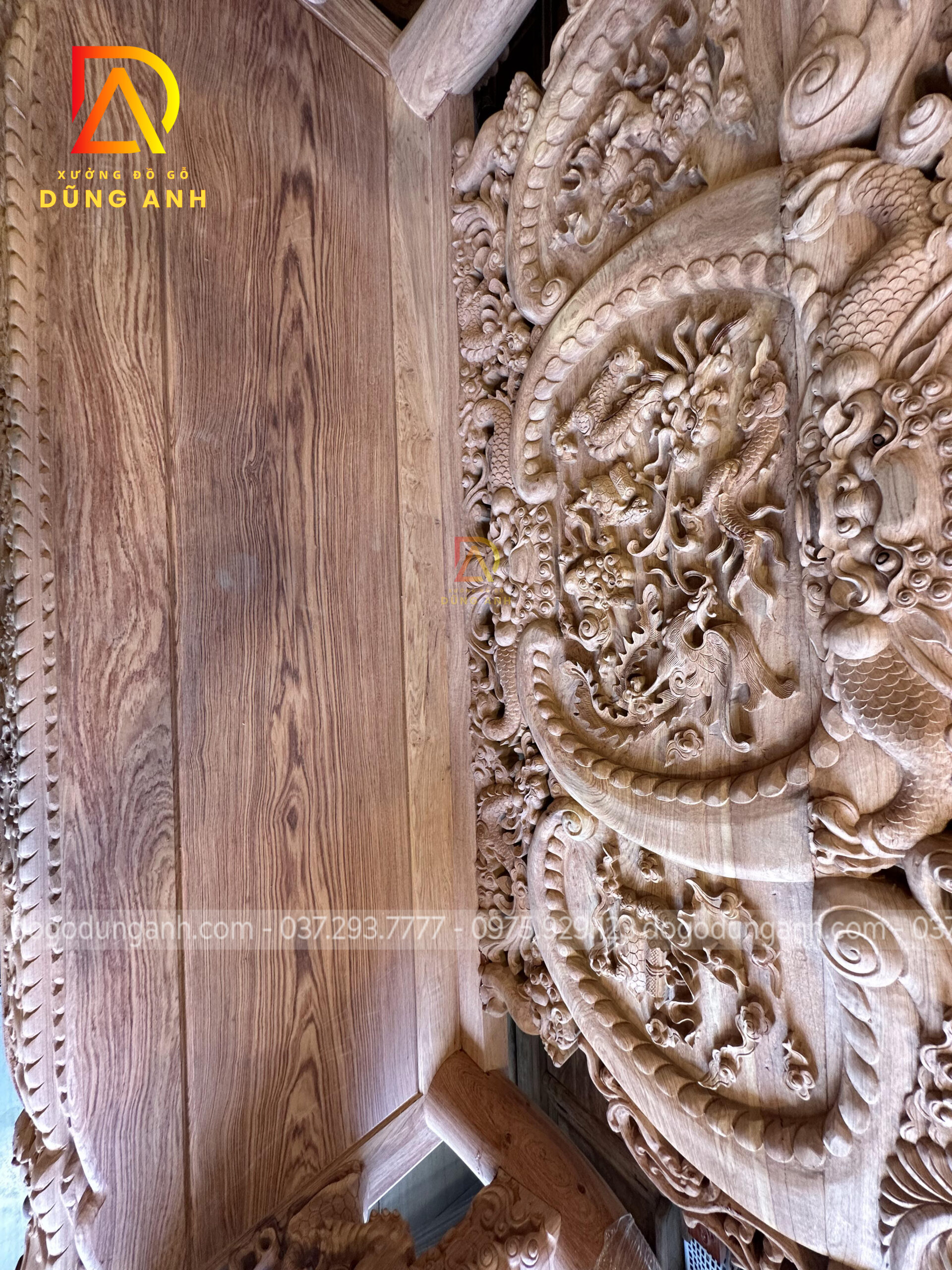 - Đoản dài 2m52, sâu 85cm, cao 1m71, bản vách 8cm trạm khắc tứ linh