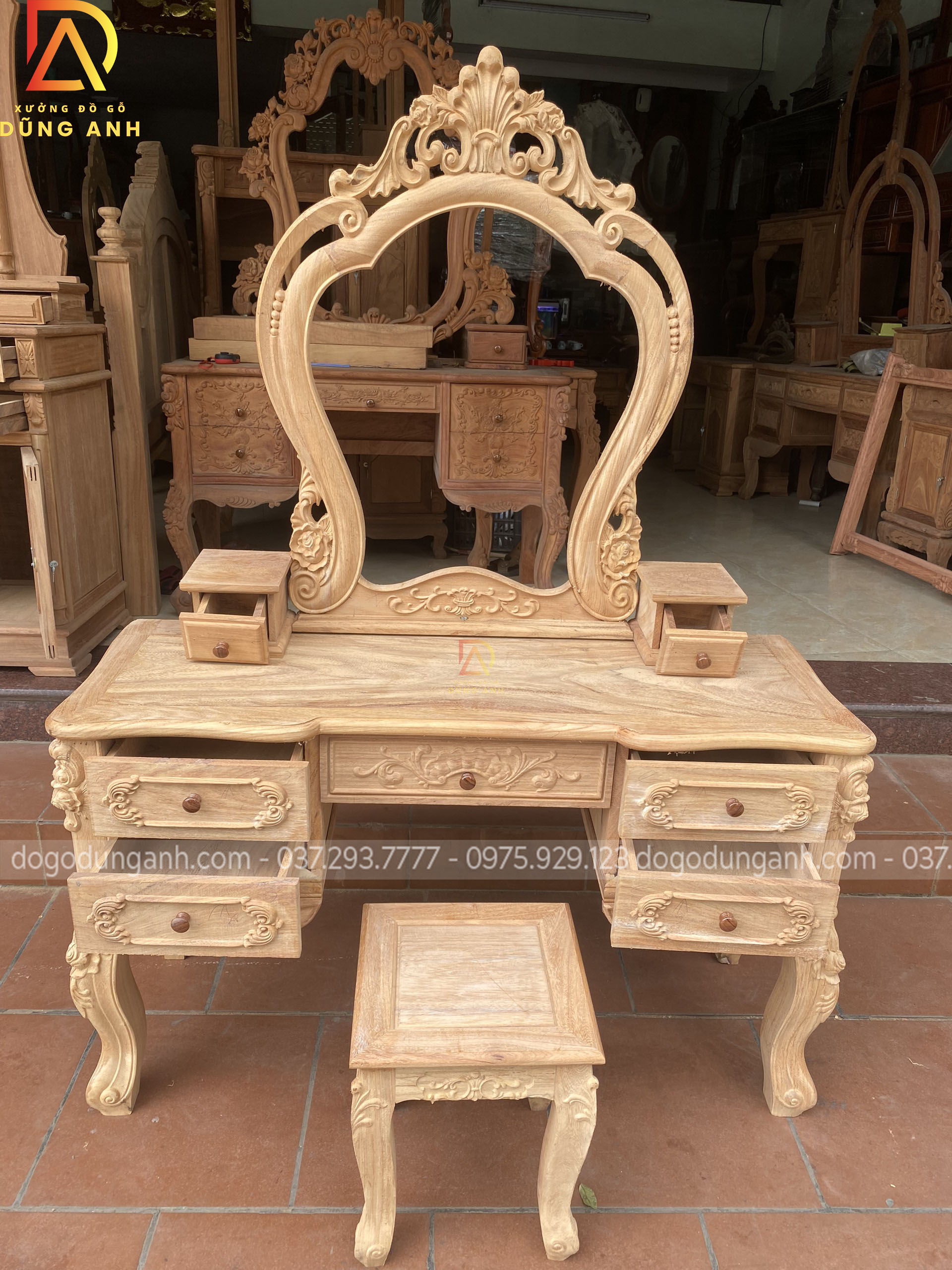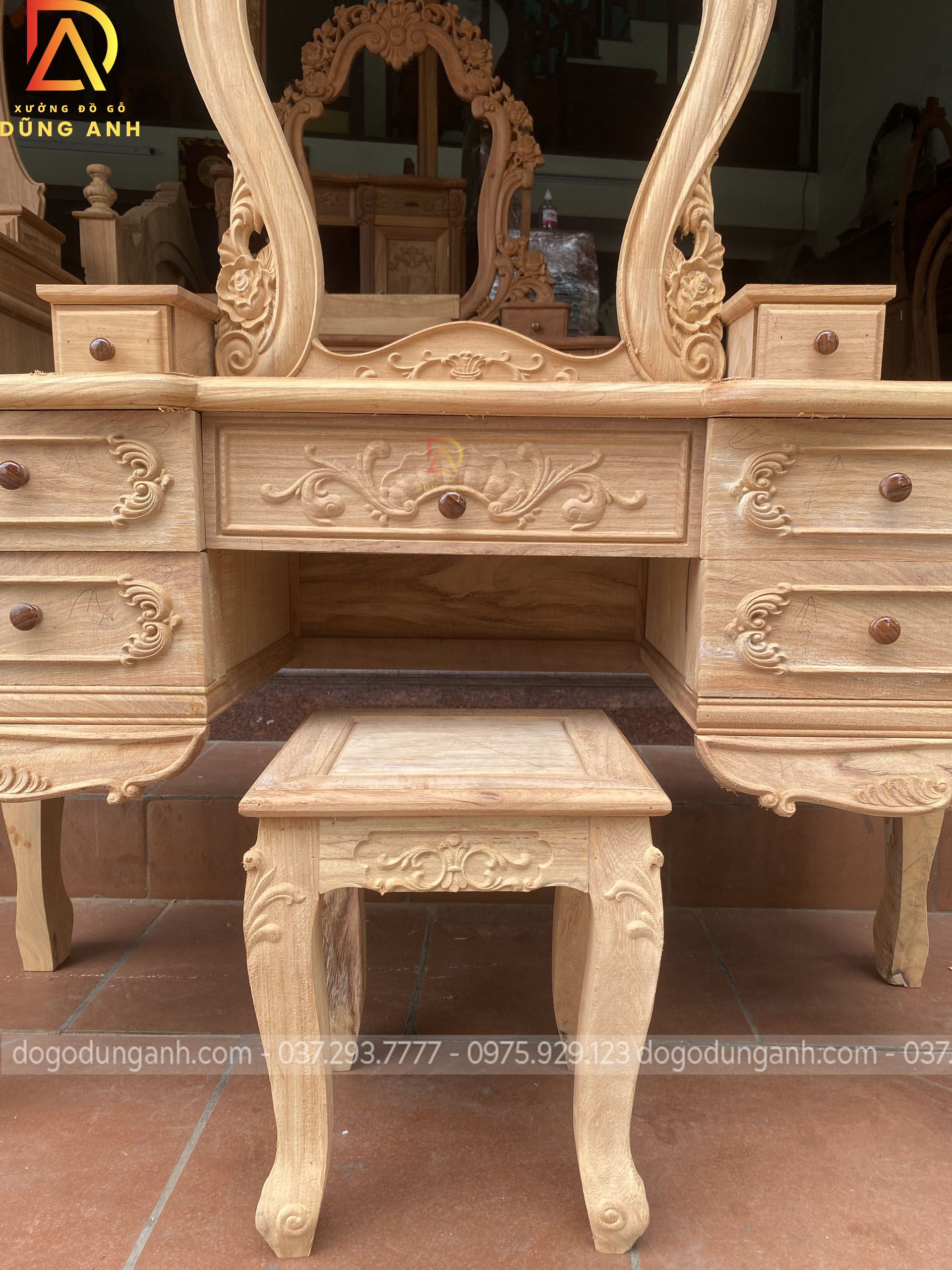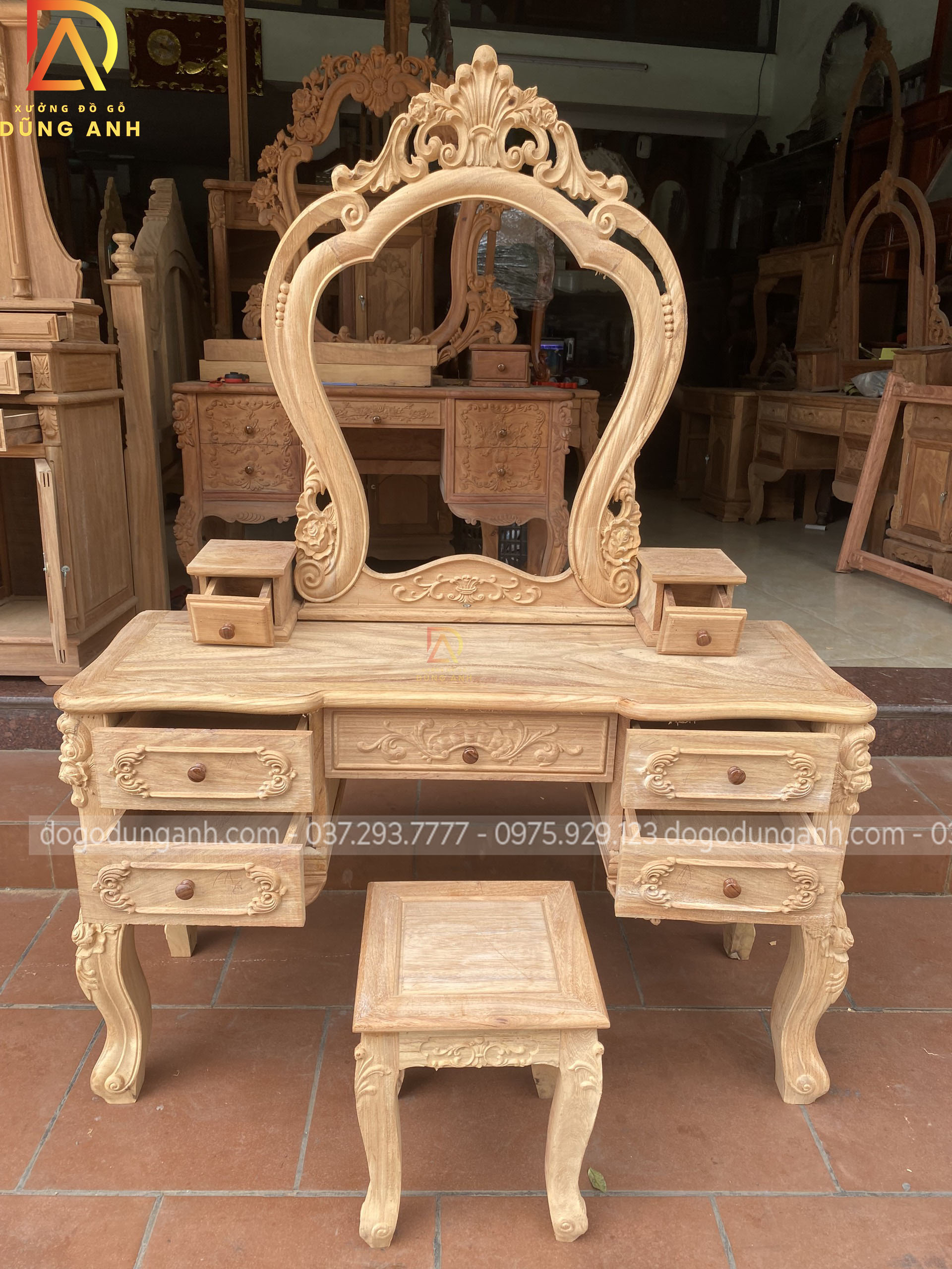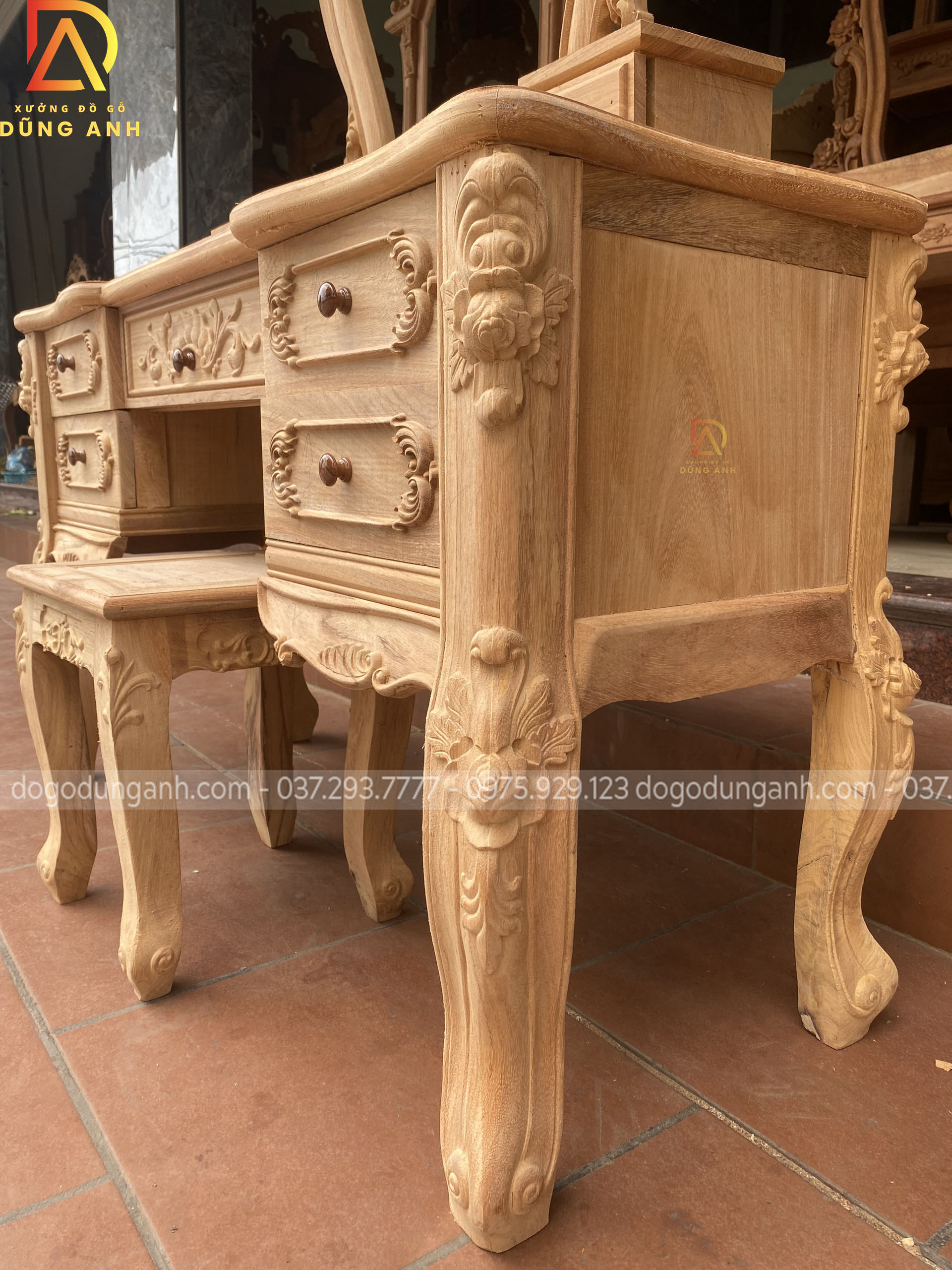 Bản mộc của bàn phấn hoa lá tây vô cùng đẹp và đẳng cấp