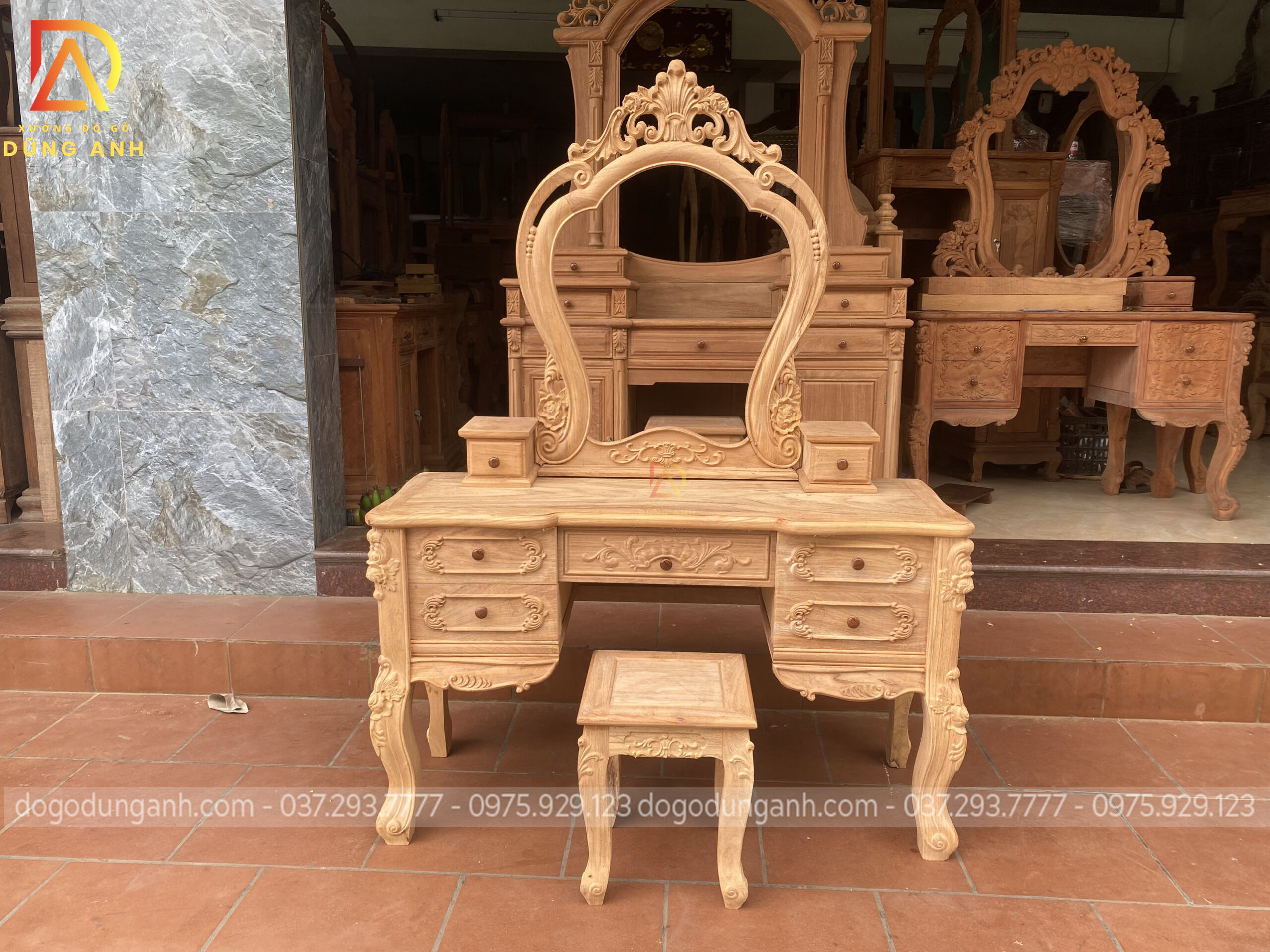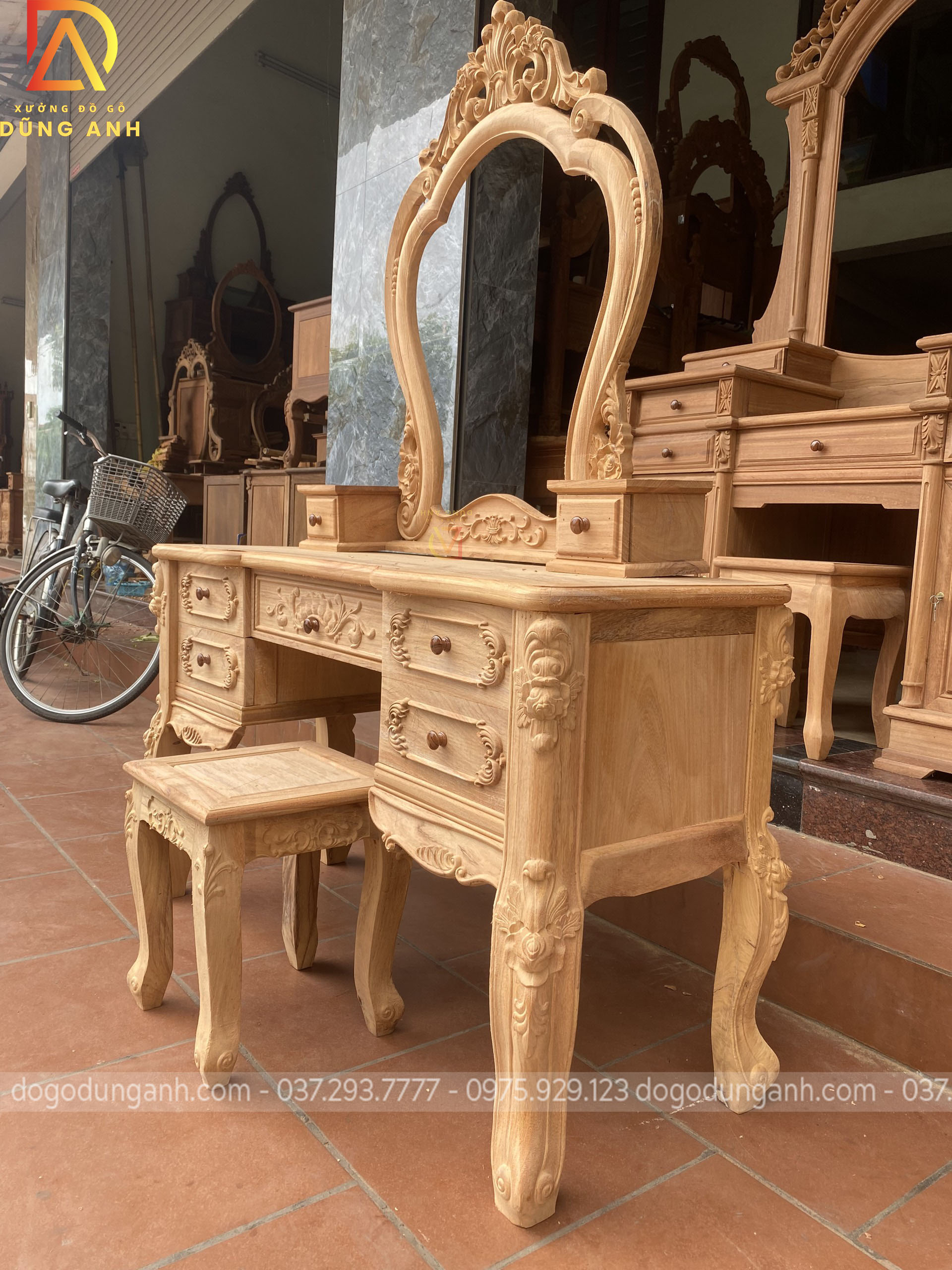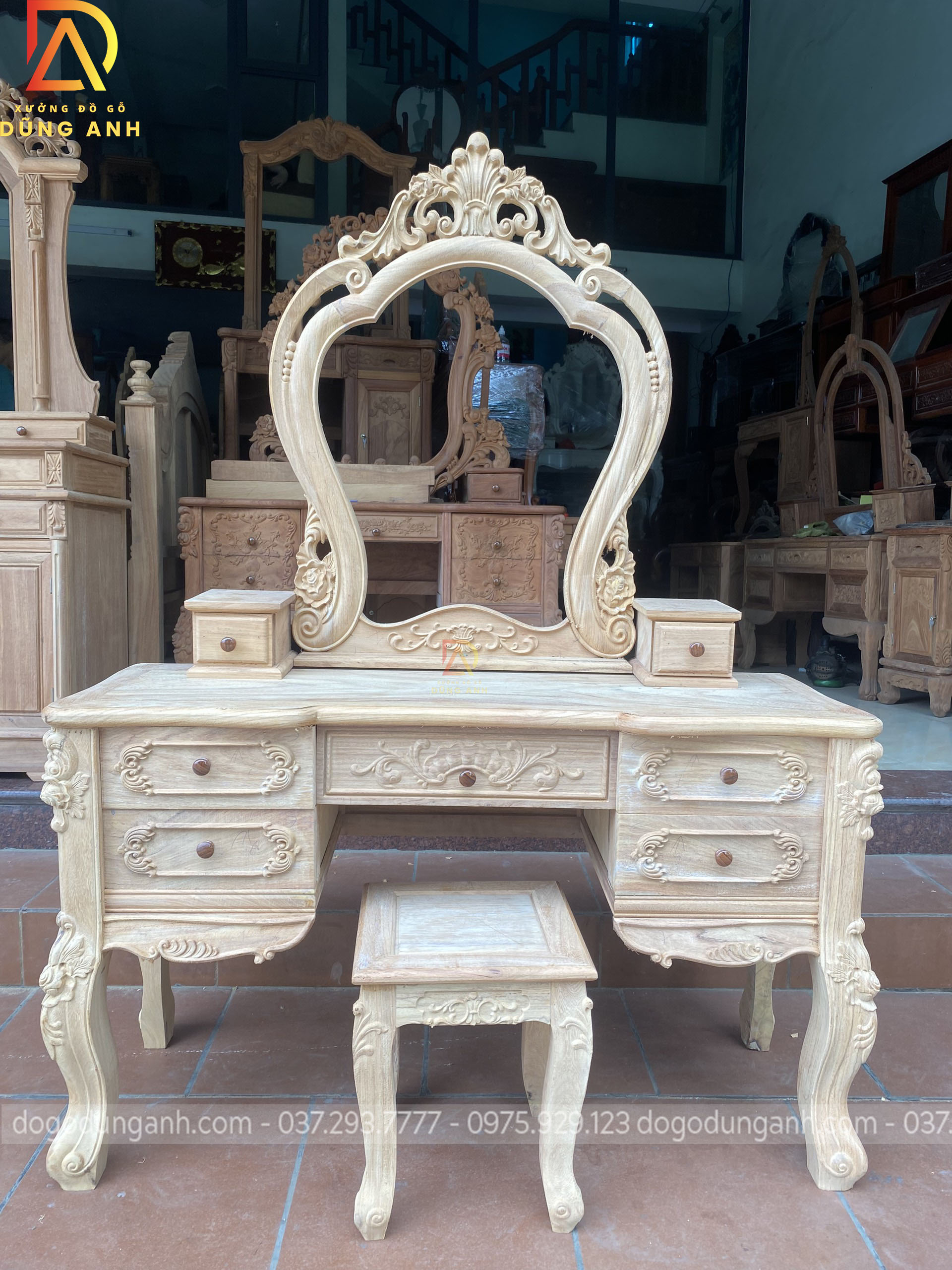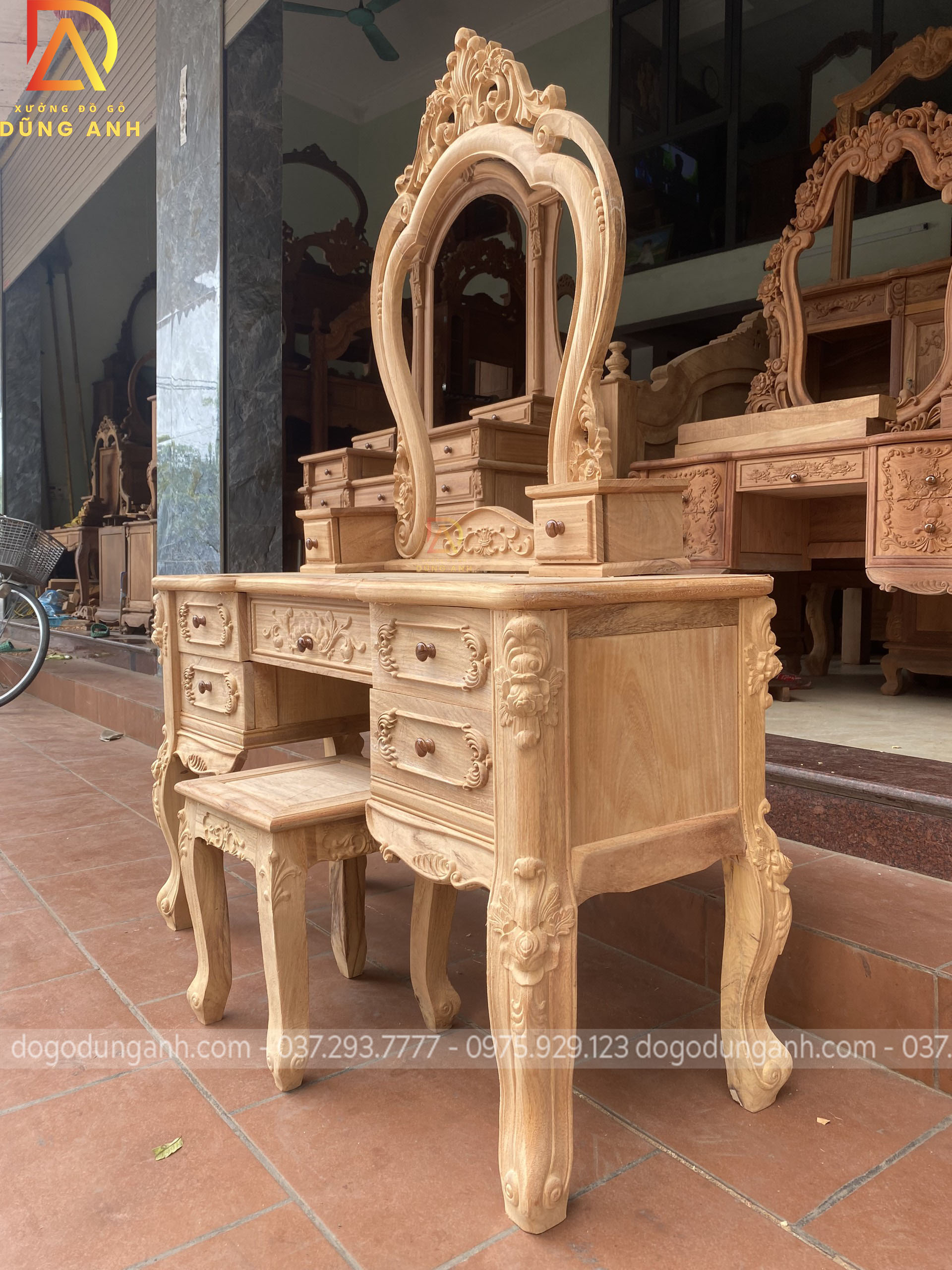 Bản mộc của bàn phấn hoa lá tây vô cùng đẹp và đẳng cấp