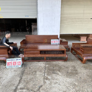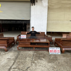 Mẫu sofa gỗ hương đá này sẽ bố trí kiểu chữ U với số lượng 5 món được đặt kích thước riêng để phù hợp với không gian phòng khách thực tế của gia đình:
