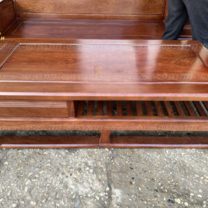 Bộ sản phẩm có một ghế băng dài kích thước hoành tráng với chiều dài 2m60 rộng 75cm lòng ghế rộng rãi kết hợp vách tựa đóng hộp bề thế cùng bệ tay hộp độc đáo. Đảm bảo mang lại không gian ngồi tiếp khách thoải mái cho gia đình.