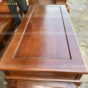 Zoom cận cảnh mặt bàn thiết kế khung tranh ván liền tấm gỗ Hương Đá tuyển vân đều nét giữ trơn bóng mịn vô cùng sang trọng sẽ được tặng kèm mặt kính chống xước khi giao hàng