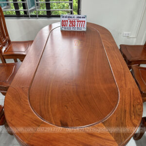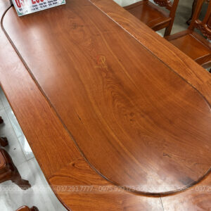- Chiếc bàn có đường kính chiều rộng là 100 cm và chiều dài 200 cm kích thước cực kì phù hợp với mẫu ghế cây đàn , mặt bàn được làm liền một tấm vân Gỗ Hương Đá cực kì đanh được phun sơn màu trầm cực kì tô điểm độ vân veo