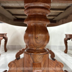 - Hai chiếc chân trụ đặc liền Nguyên Khối được tiện tròn thủ công hoàn toàn bằng tay có kích thước đường kính 18cm , đi cùng với hai chiếc chân trụ là 3 chiếc chân chó tạo thêm độ vững chãi để có thể đỡ được mặt bàn